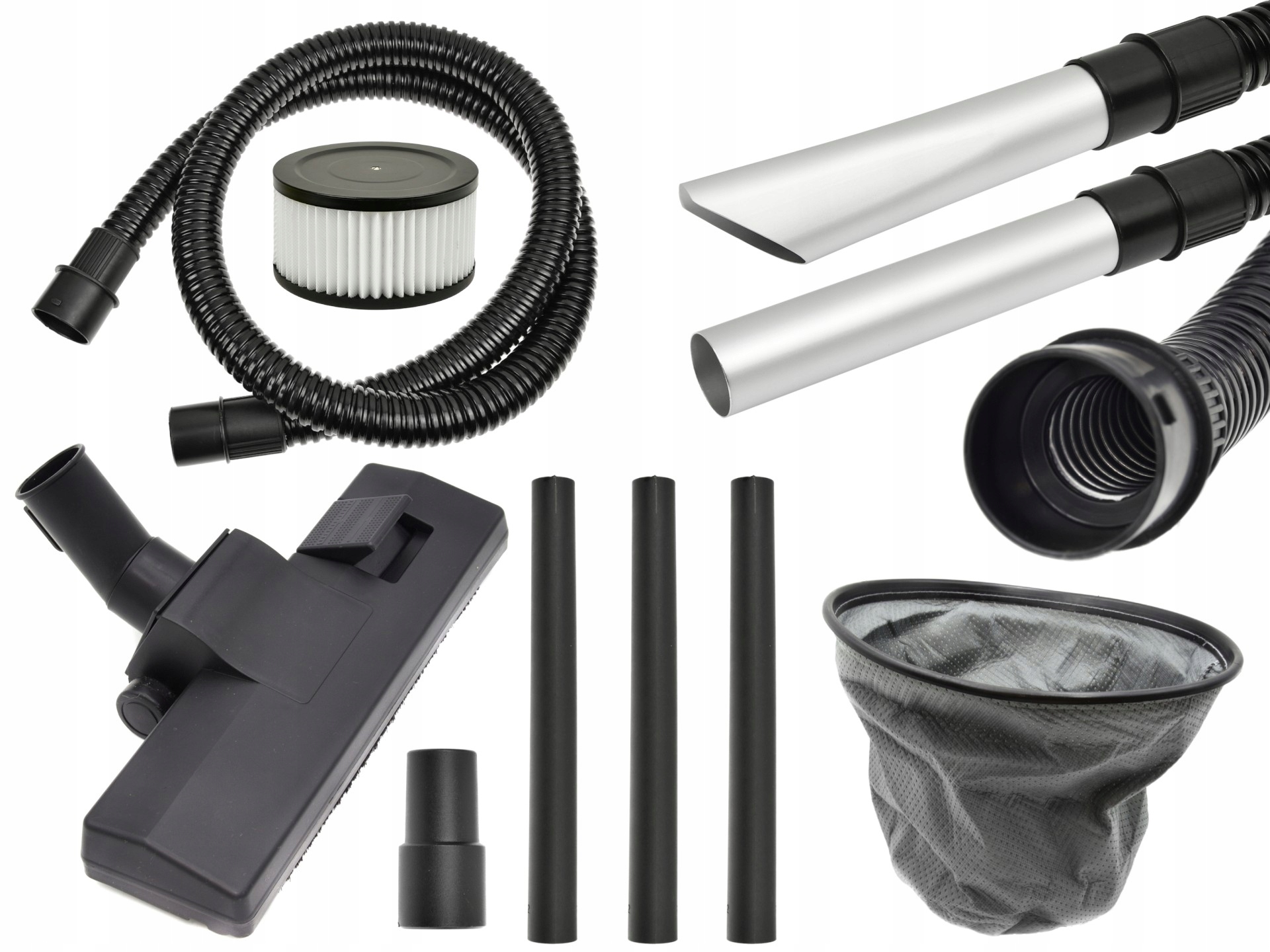 В комплект входит универсальная насадка для пылесоса и трехсекционная трубка.