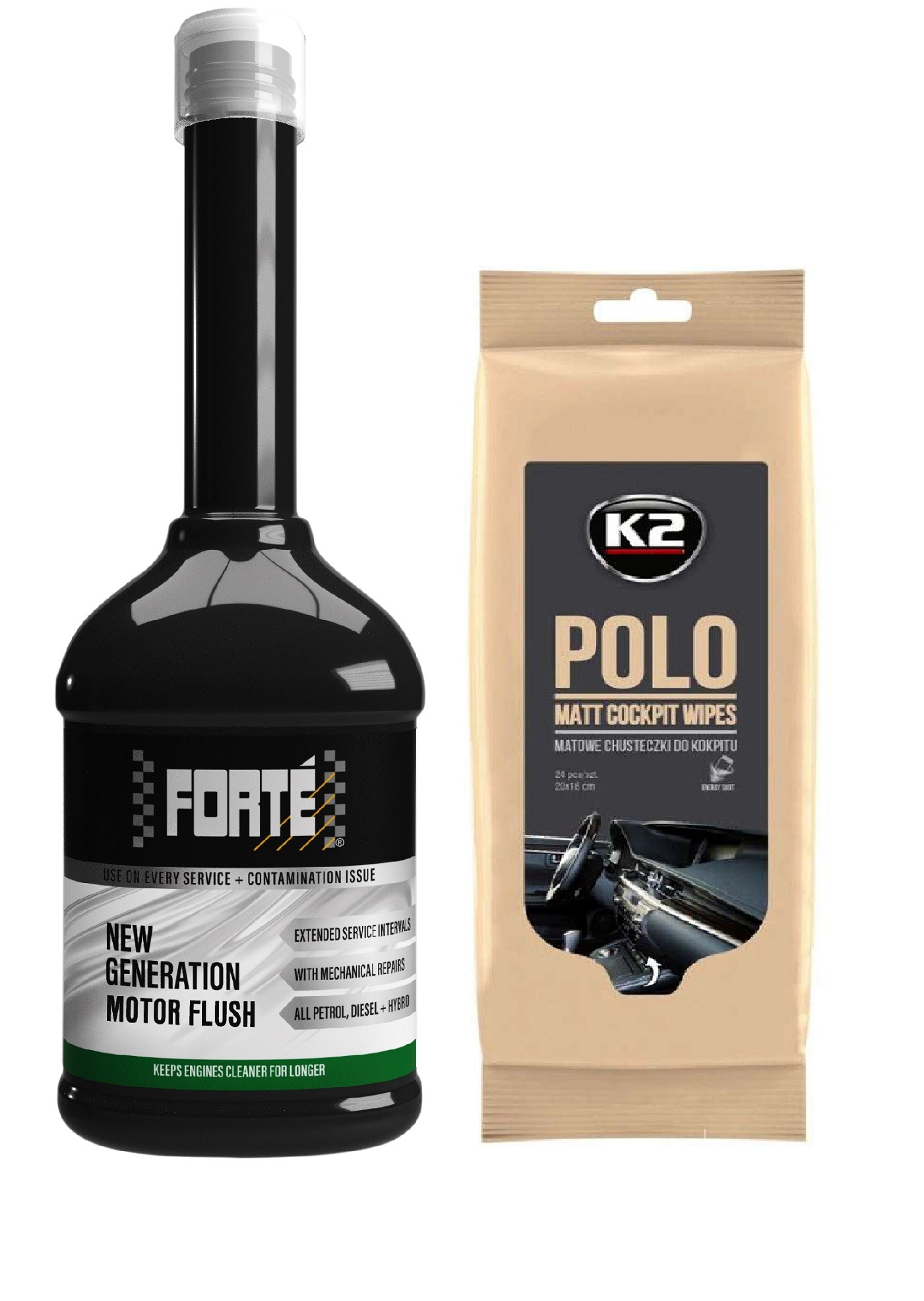 Залейте 1 x Forte Motor Flush в грязное масло и выполните очистительную поездку. на расстояние около 30 км, на низких оборотах дизеля до 2100 об/мин, бензина 3000 об/мин. Затем замените масло и масляный фильтр. В новое масло добавьте 1 x Forte Top End Treatment.