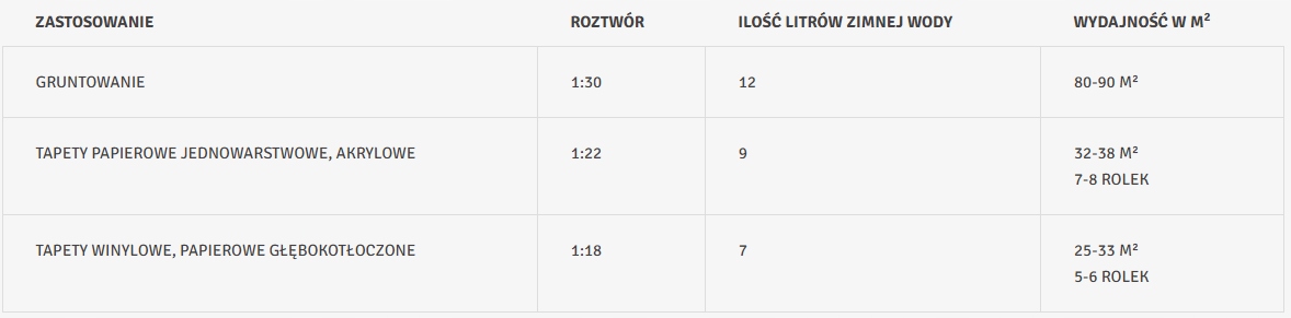 Раствор следует готовить путем быстрого и равномерного заливания содержимое пакета в отмеренное количество воды при интенсивном перемешивании. Время растворения клея около 2 часов. Приготовленный раствор должен быть однородным и не должен содержать крупных нерастворившихся комков.