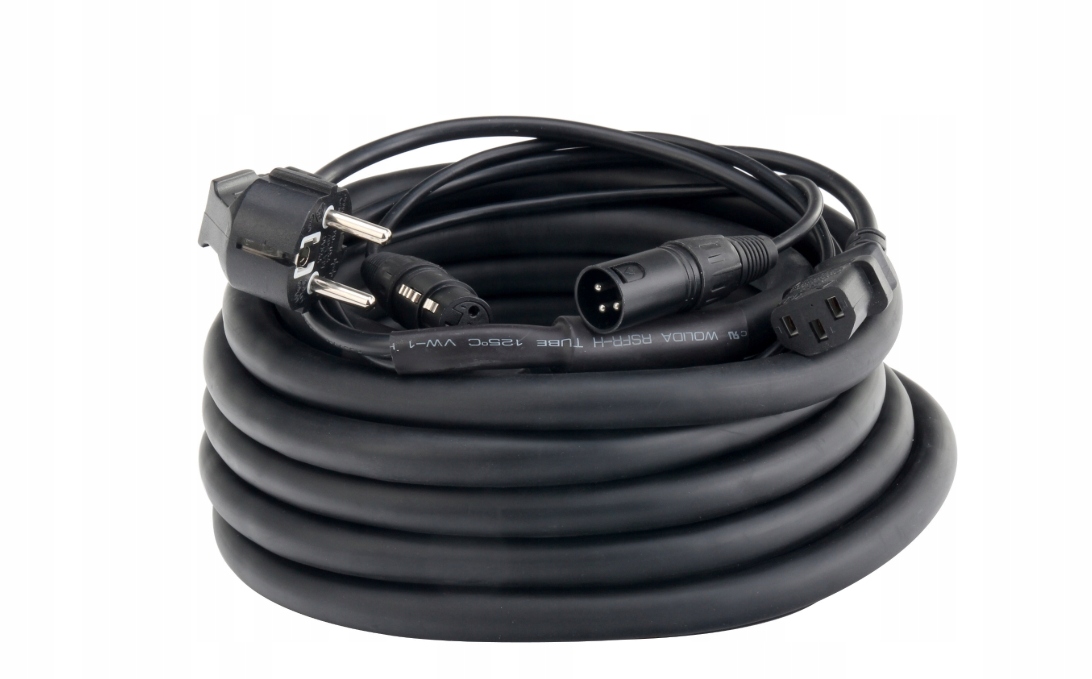 Комбинированный кабель Pronomic для активных колонок сочетает в себе мощность и мощность сигнала в одном кабеле. Это позволяет избежать множества раздражающих запутанных кабелей. Кабель оснащен 3-контактными разъемами XLR (папа/гнездо), а также разъемами с заземленными контактами и разъемом IEC/IEC (гнездо) для питания.