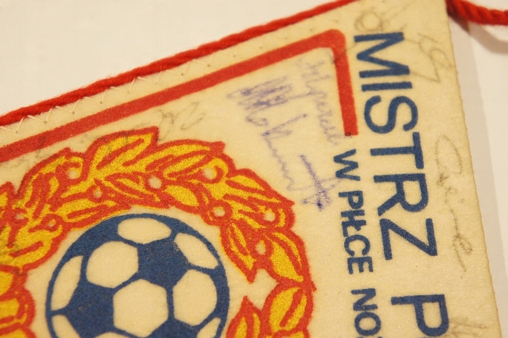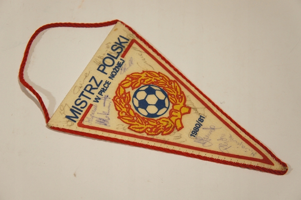 PROPORCZYK RTS WIDZEW ŁÓDŹ PRL MISTRZ POLSKI w PIŁCE NOŻNEJ AUTOGRAF BONIEK