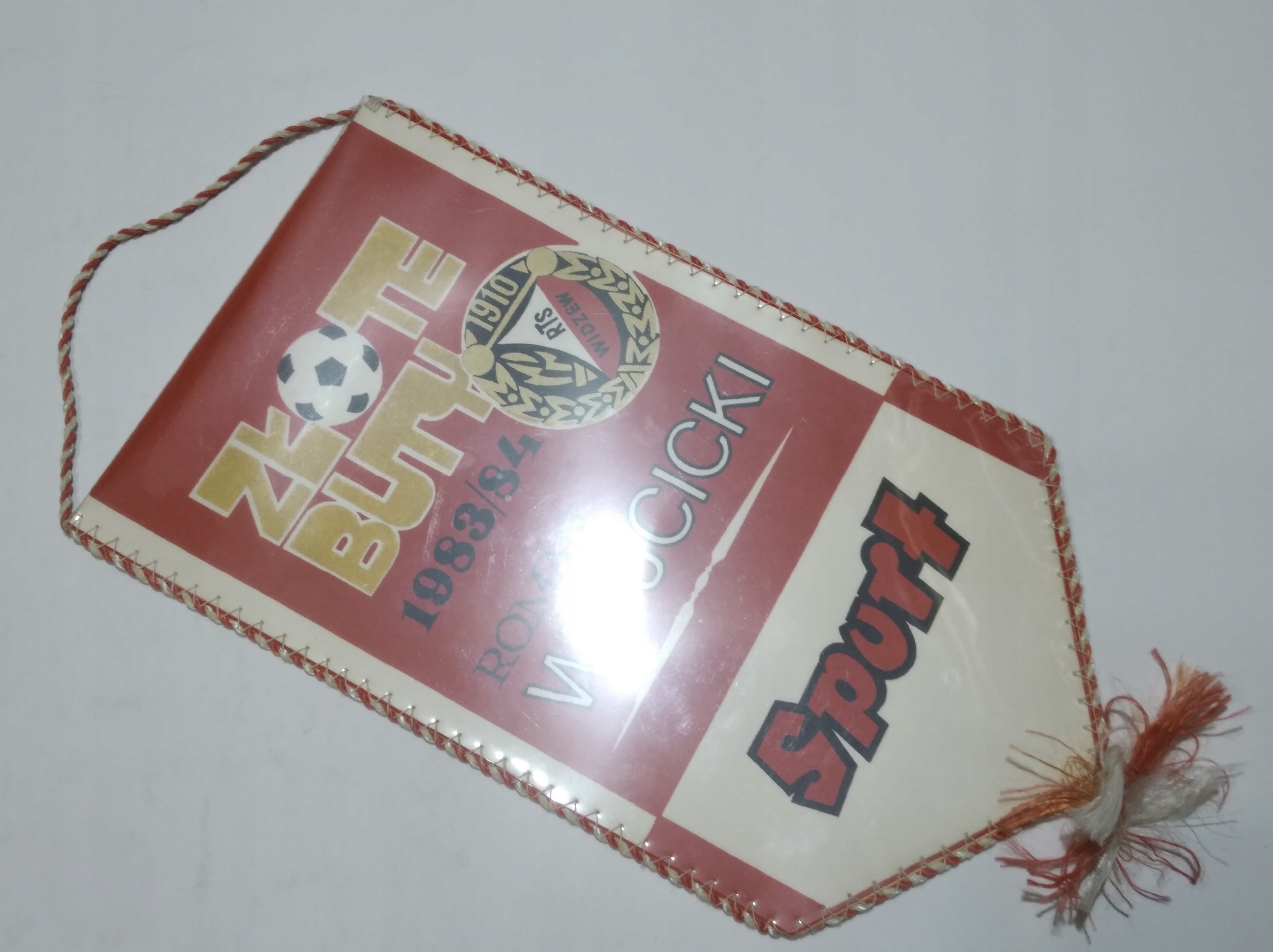 PROPORCZYK RTS WIDZEW ŁÓDŹ PRL PAMIĄTKA ZŁOTE BUTY ROMAN WÓJCICKI 1983/1984