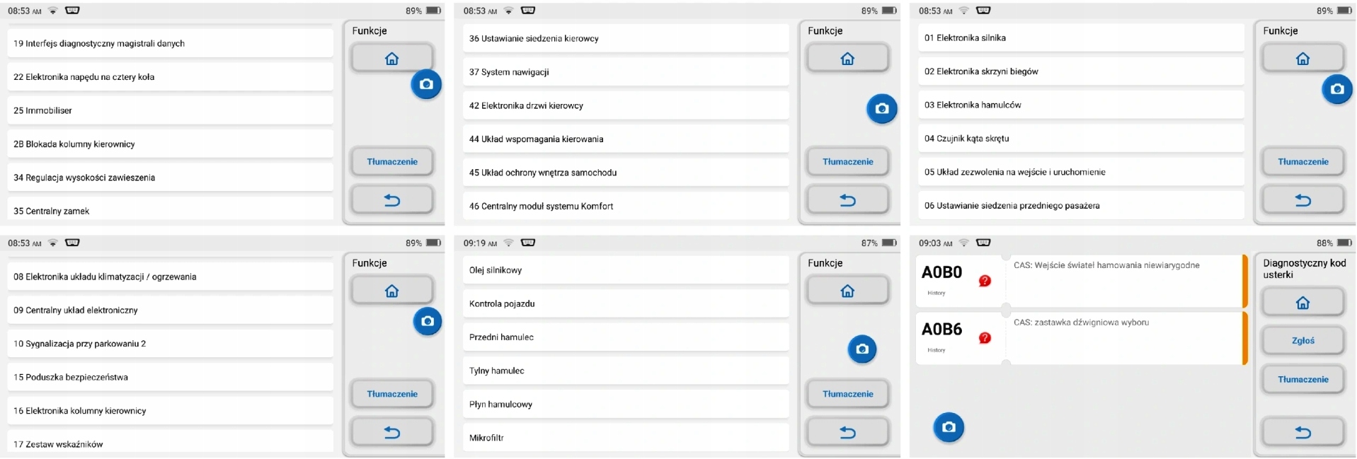 Модель ArtiDiag800BT работает на базе операционной системы Android 10. Диагностика полностью работает на польском языке.