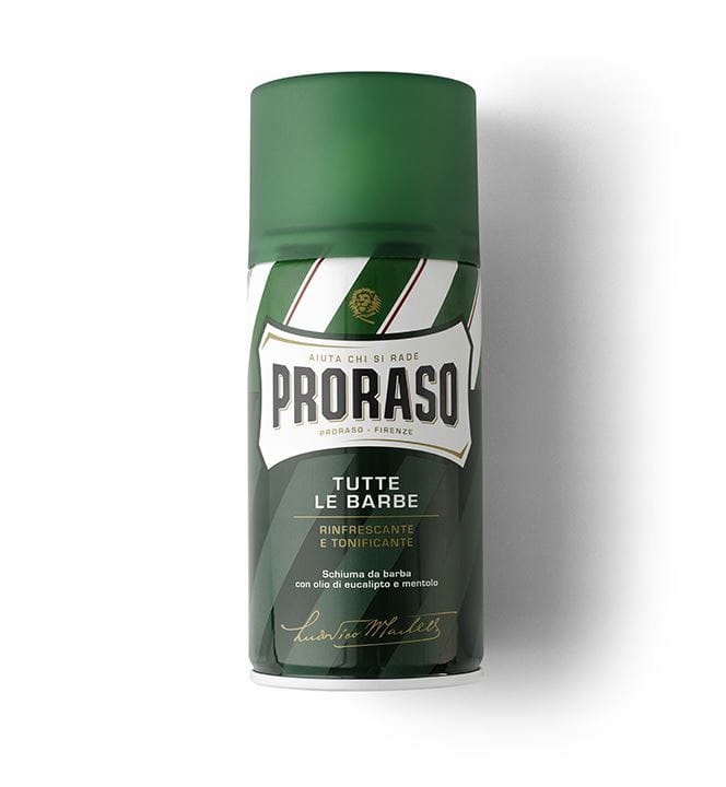 PRORASO — бренд, созданный во Флоренции в 1908 году. Он пользовался большой популярностью и признанием на протяжении нескольких поколений. Пена для бритья PRORASO содержит ингредиенты природного происхождения, которые делают ее уникальным продуктом высочайшего качества. Содержит масла эвкалипта, обладающие тонизирующими и очищающими свойствами, освежающий ментол, глицерин, защищающий кожу от раздражений, и зародыши пшеницы. Не содержит парабенов, силиконов, натуральных масел и SLS.