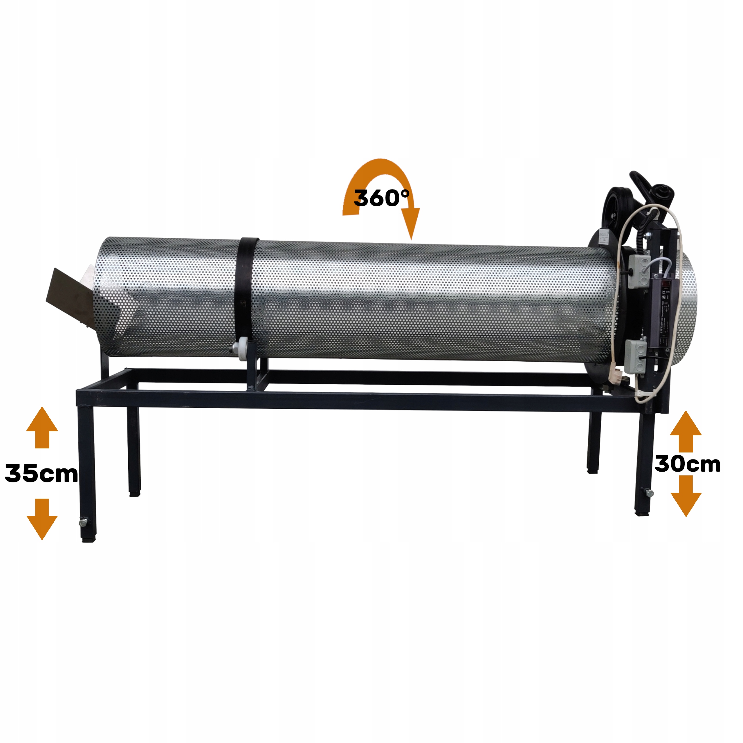 3️⃣. Просеивающий барабан - изготовлен из материалов высочайшего качества, обеспечивающих длительное и комфортное использование всего устройства. «Направляющие» изготовлены из толстой бесшовной трубы (7мм) для исключения пропуска барабана при его вращении. Барабан может быть изготовлен из различных материалов – от оцинкованного листового металла до листового металла конидура или даже тканой сетки! На этом аукционе вы покупаете барабан с диаметром ячеек 5 мм!