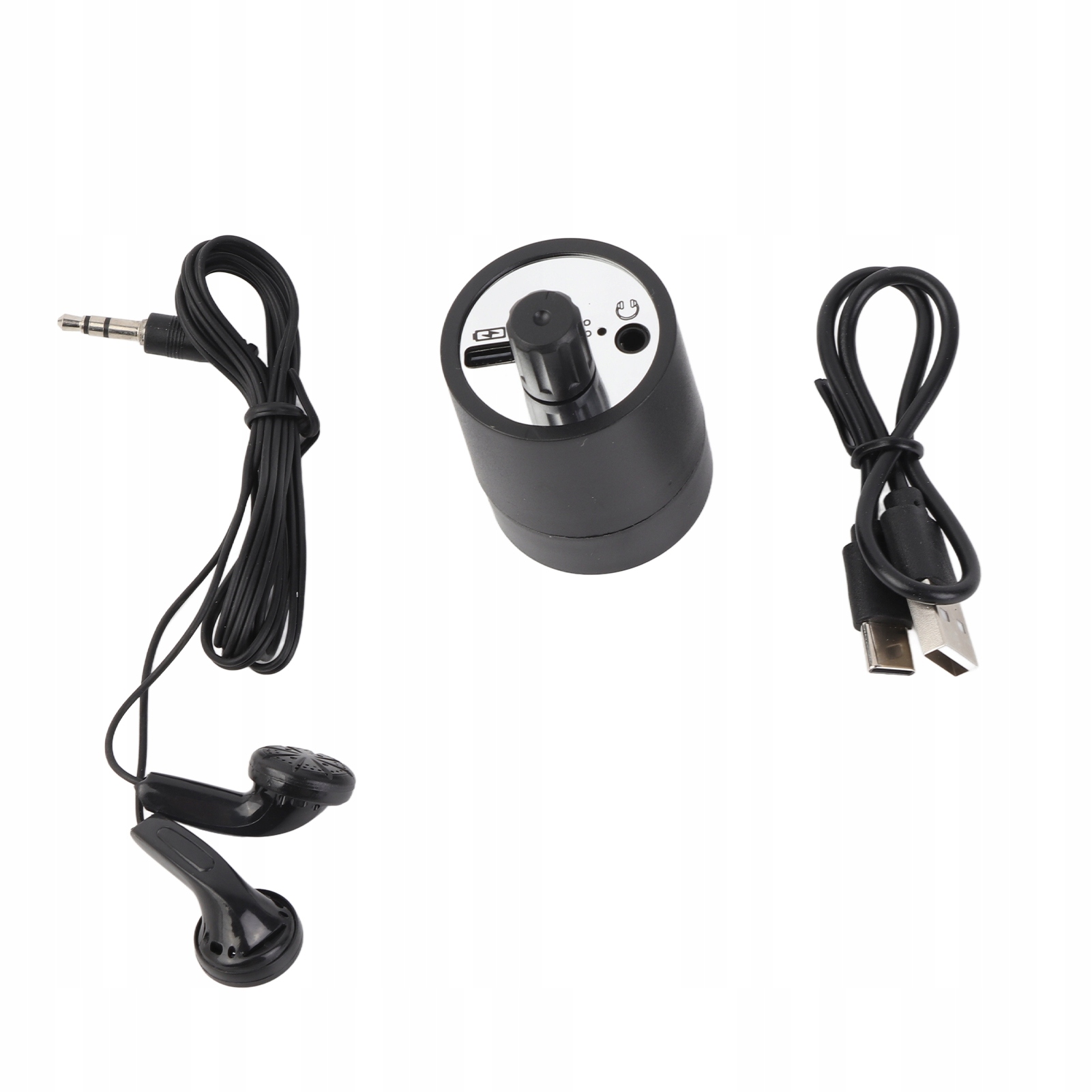 3. Компактный и функциональный, с разъемом для зарядки, разъемом для наушников и верхней ручкой переключателя.