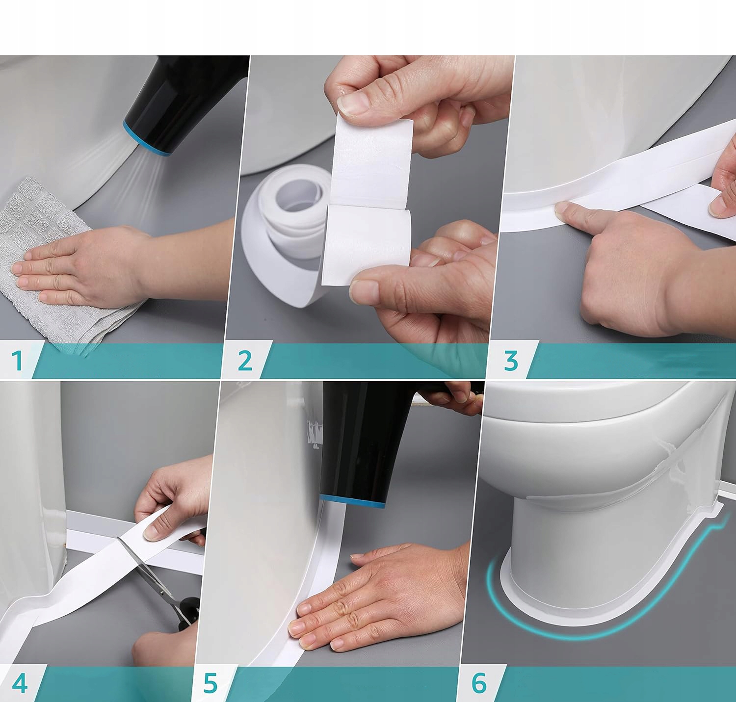 Используя】 : перед установкой очистите область и оставьте, чтобы высохнуть. Снимите пластиковую герметичную фольгу с поверхности клея и используйте фен, нагрейте герметичную ленту, чтобы увеличить его вязкость, затем нажмите твердо и сглаживает скребок. раковины, ванна и стены. Это может предотвратить плесень и почерние, сохраняя их чистыми и заказывающими.