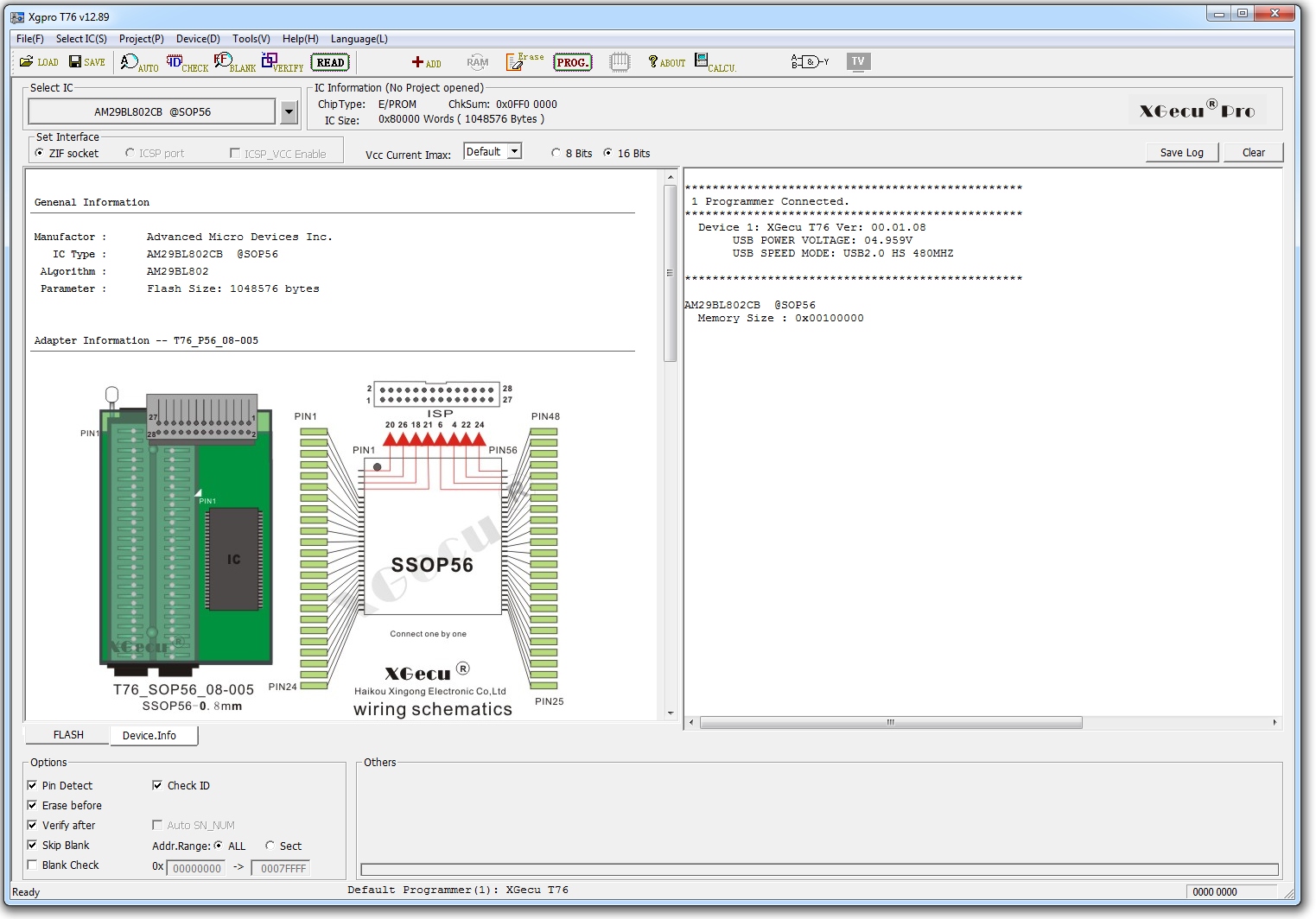 SSOP56 Simple AM29BL802/161 Адаптер для XGECU T76