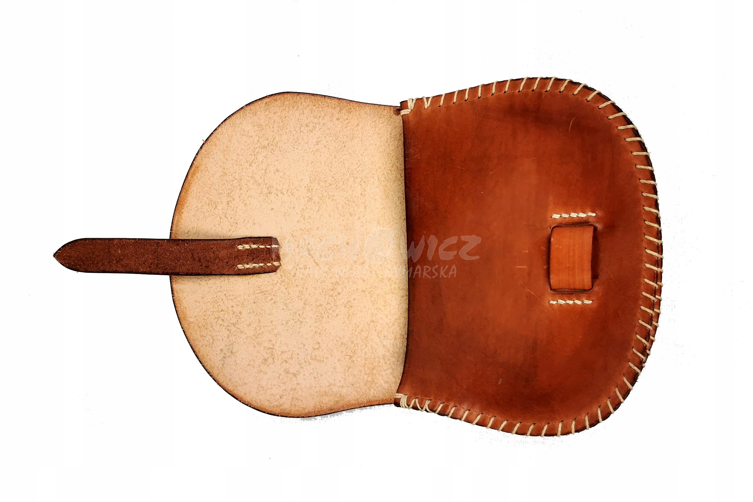 Бурса изготовлена по мотивам исторических гравюр, из заготовки кожи толщиной 2 - 2,5 мм. Сшит вручную вощеной бечевкой.