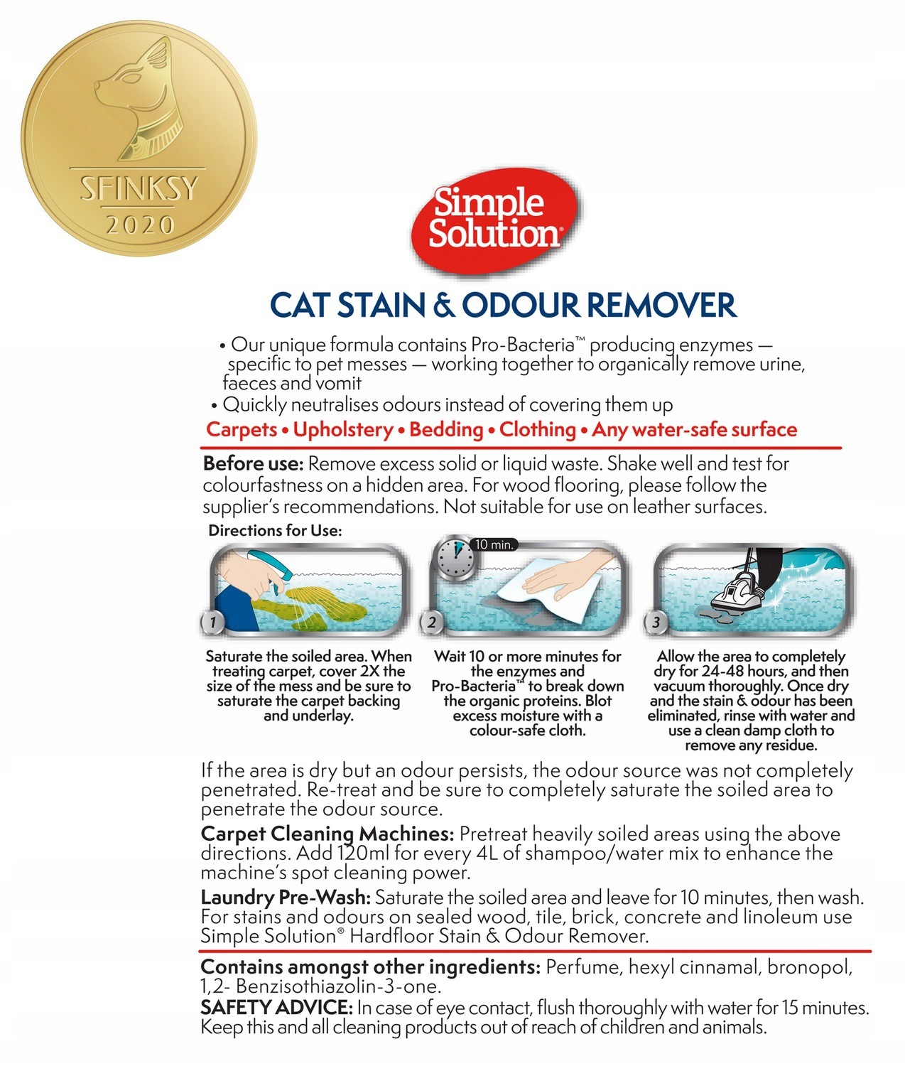 Наша уникальная формула содержит комплекс Пробактерий , который производит ферменты, удаляющие пятна и запахи, оставленные домашними животными. Благодаря высокой эффективности рекомендуется для органического удаления стойких пятен мочи, кала и рвотных масс. Он идеально подходит для удаления пятен и запахов с таких поверхностей, как ковры, обивка, кровати и одежда.