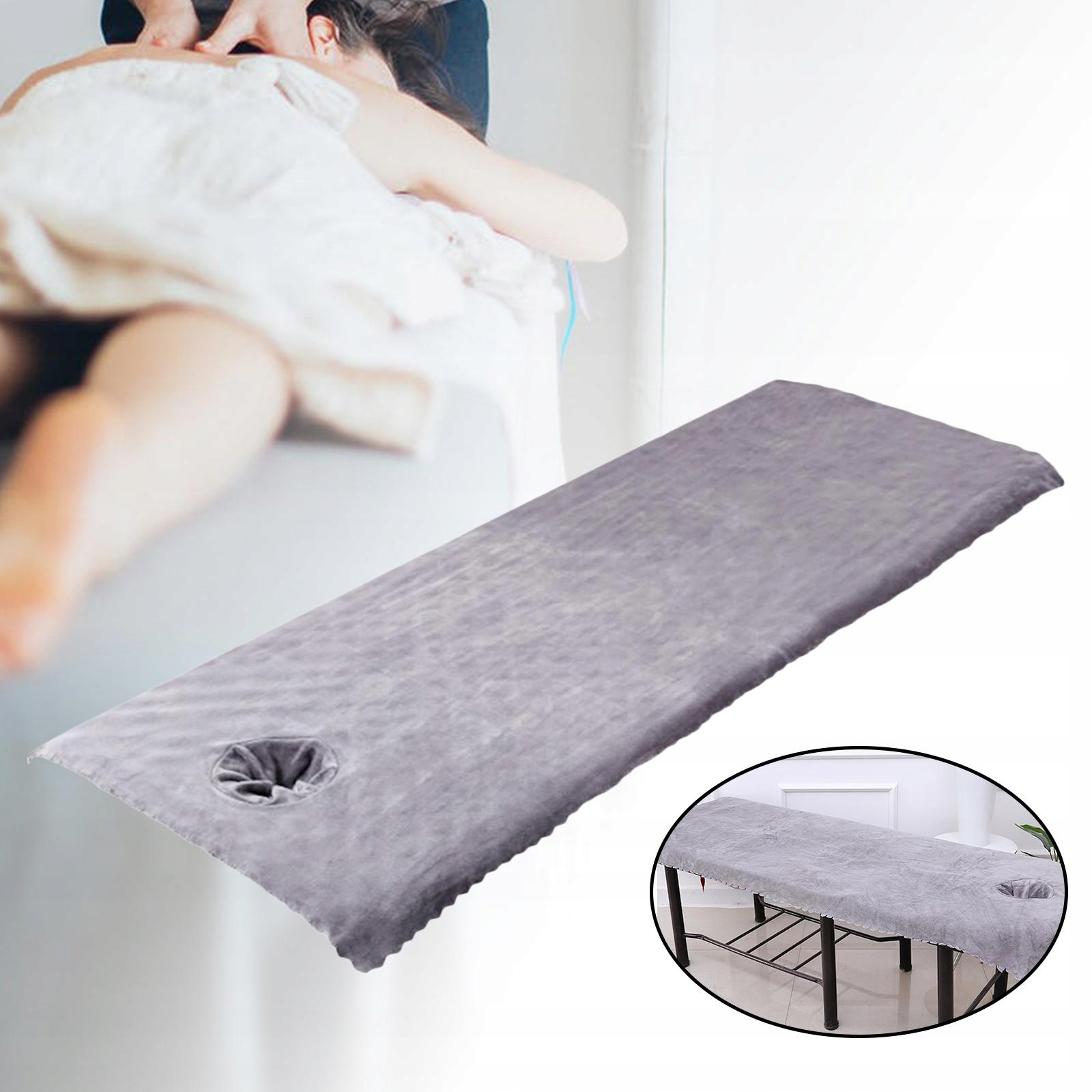 Чехлы на массажный стол с отверстием для лица из полиэфирного волокна для массажной кровати светло-серого цвета