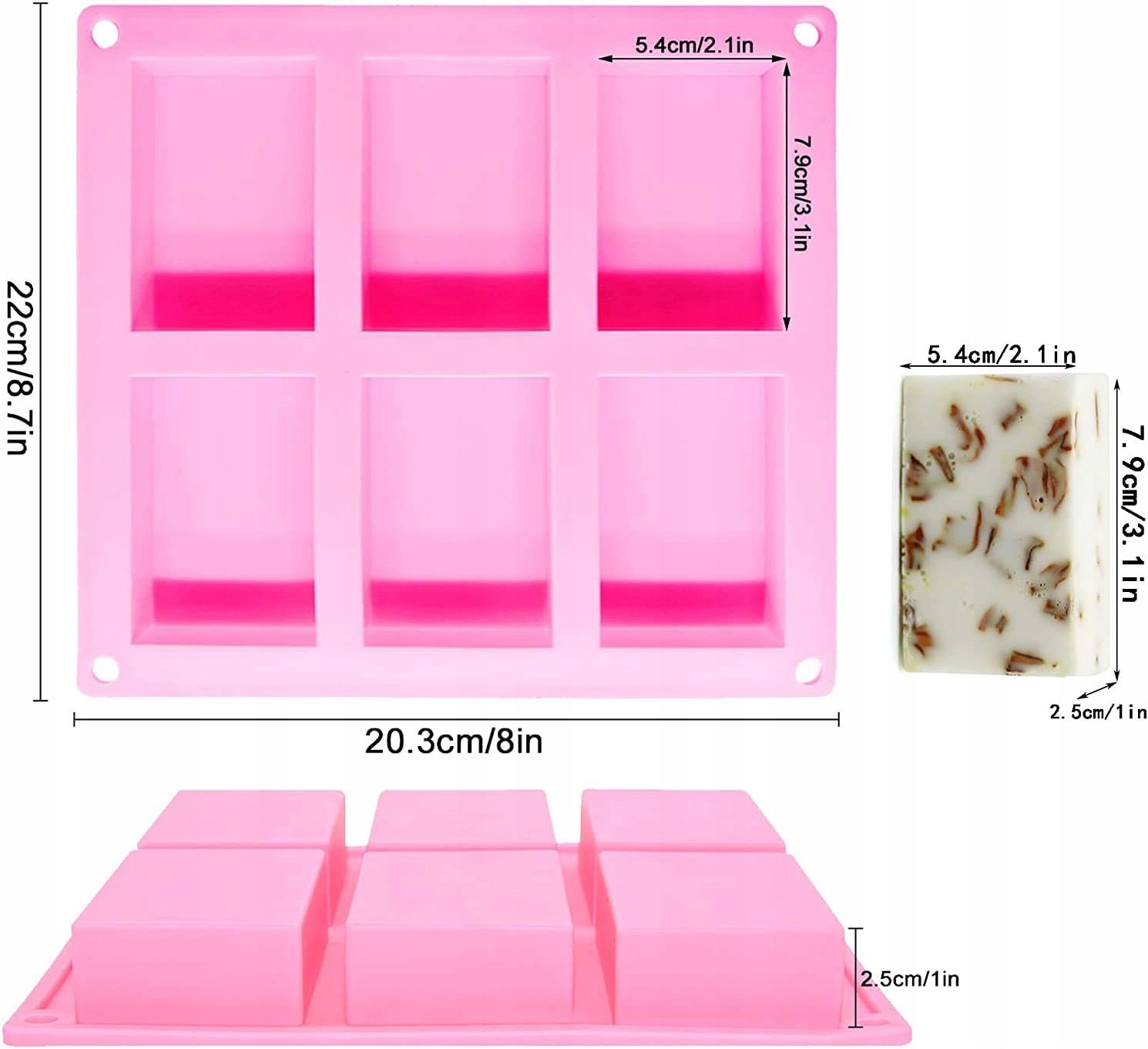 <р>1. Качественный материал - прямоугольные формы для мыла изготовлены из пищевого силикона, который не содержит вредных химических веществ и полностью безопасен в использовании. <р>2. Термостойкий и морозостойкий силикон (от -40°F до 230°F). Силиконовые формы для мыла позволяют безопасно использовать его в холодильнике, морозильной камере, духовке или микроволновой печи. <р>3. Идеальный подарок, может стать прекрасным подарком жене, дочери, женщине, девушке на День святого Валентина, Рождество, детский праздник. <р>4. Идеальный размер (105 мл) для изготовления подарочного мыла, лосьонов или отдельных прямоугольных тортов или желе. <р>5. Благодаря гибкому, но прочному материалу мыло легко выскальзывает.Технические данные: