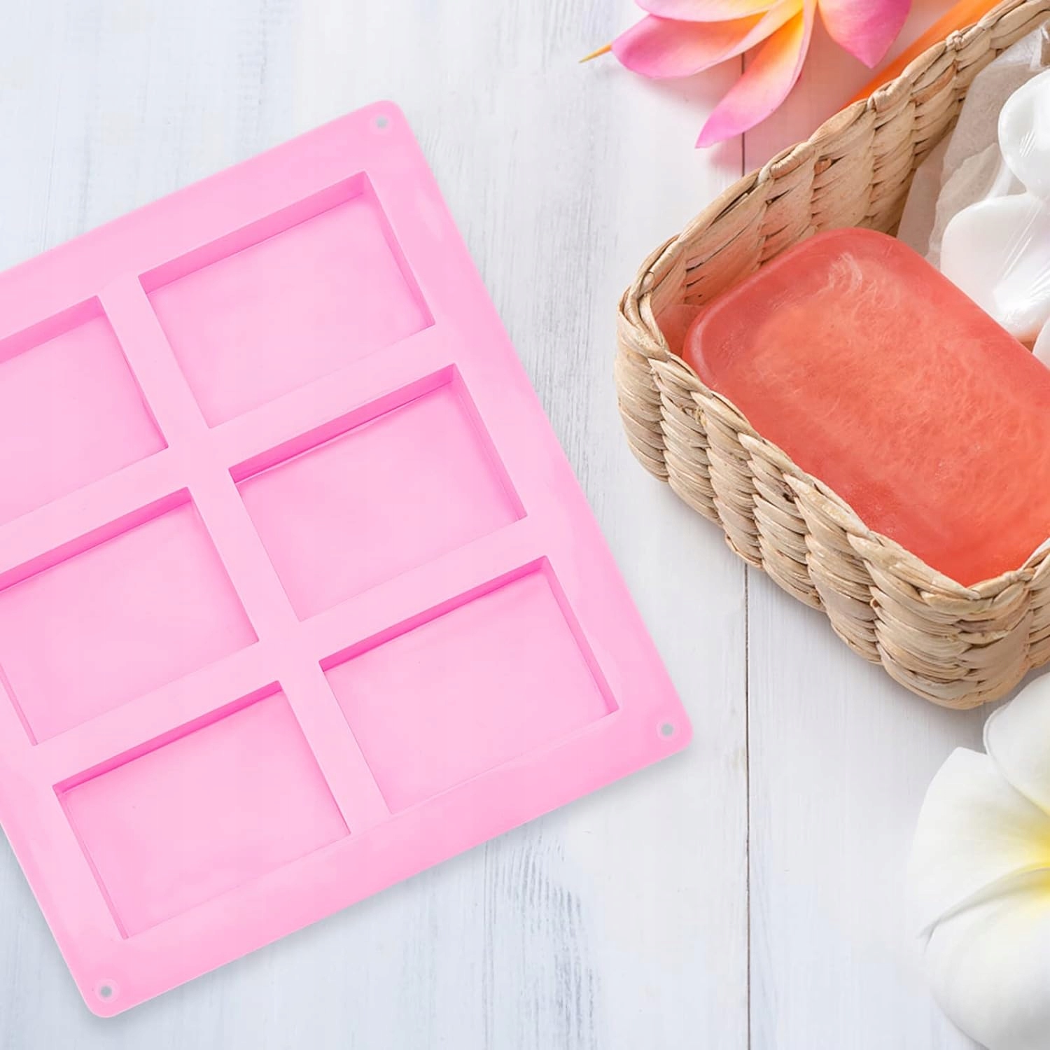 Prostokątne silikonowe foremki do ciasta, mydła 2 zestawy po 6 sztuk różowe