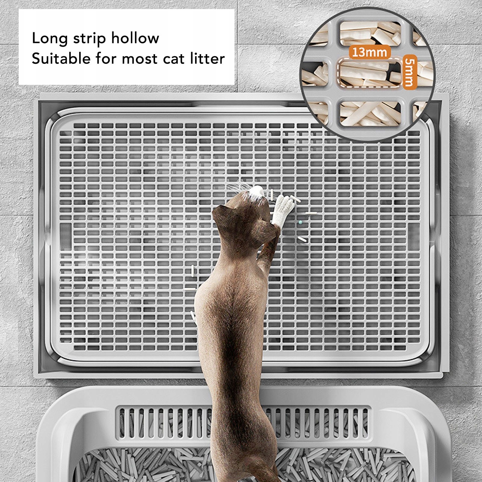2. Двухслойная конструкция: двухслойная структура кошачьего туалета фильтрует и контролирует пыль, уменьшая количество мусора, выносимого из лотка.