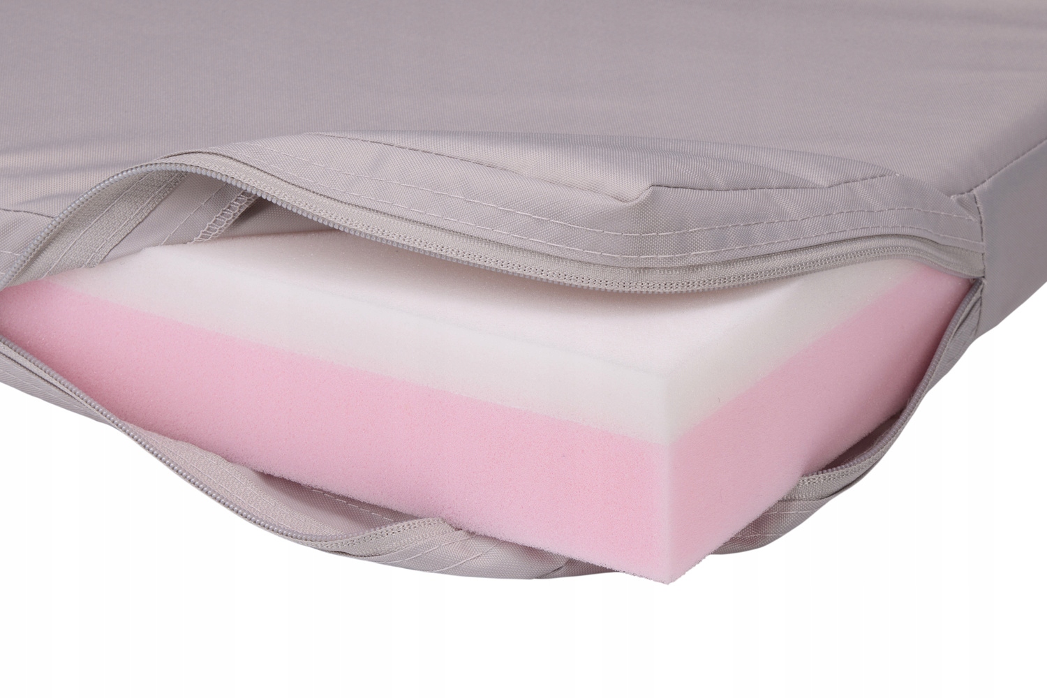 - Толстый двухслойный матрас с более твердым покрытием снизу и мягкой пеной ближе к телу защищает от холода и влаги и обеспечивает комфорт во время сна