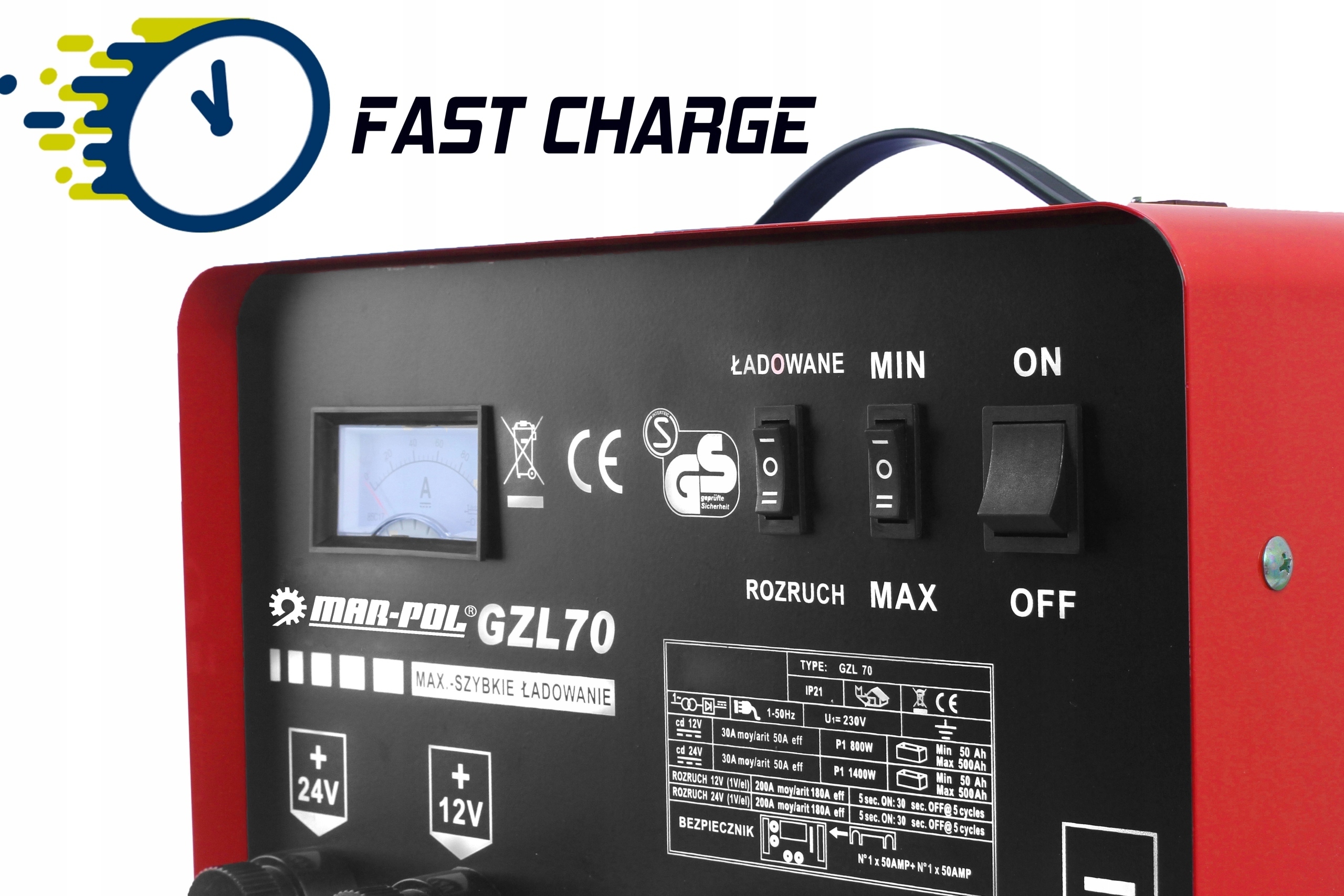 Зарядное устройство GZL-70 оснащено функцией FAST CHARGE, позволяющей еще быстрее зарядить аккумулятор, что будет особенно полезно при внезапной необходимости быстрой зарядки аккумулятора