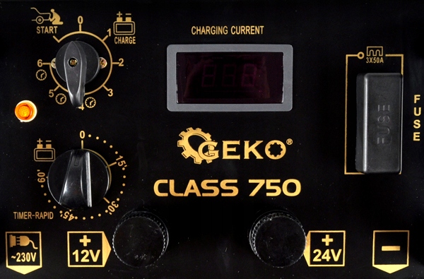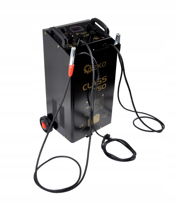 Пусковое устройство серии Class 750 от известной компании GEKO предназначено для запуска и зарядки свинцово-кислотных аккумуляторов напряжением 12 В или 24 В, используемых, в частности, в грузовых и строительных машинах, а также для запуска двигателей внутреннего сгорания в случае полной разрядки аккумулятора или очень низкой температуры окружающей среды. Выпрямитель оснащен термовыключателем, отключающим систему при перегреве трансформатора.