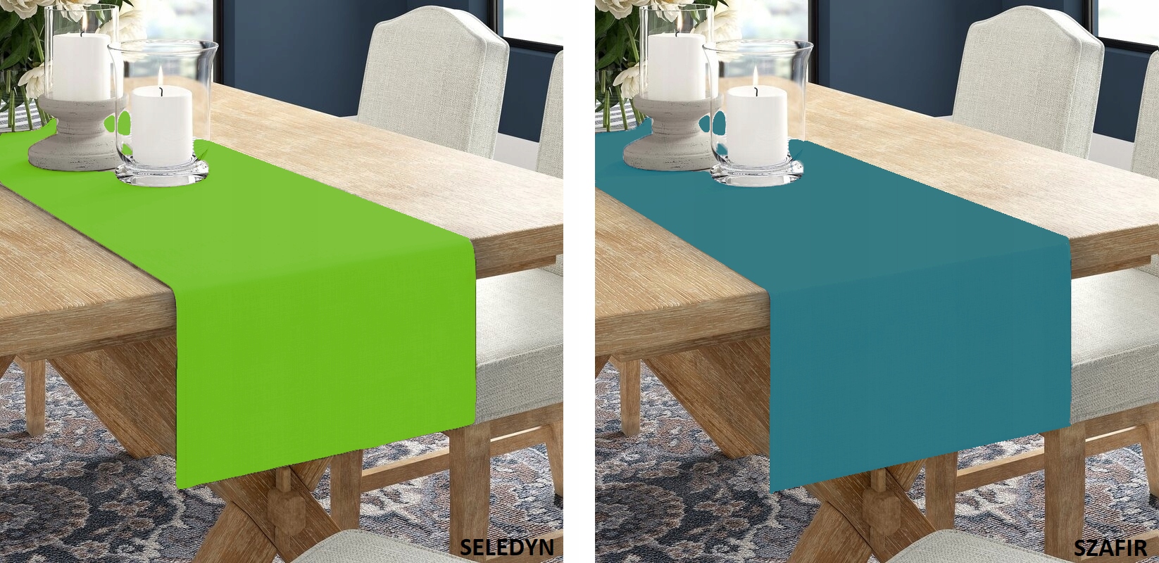 Настольные дорожки изготовлены из гладкой и матовой ткани, поэтому очень красиво смотрятся в помещениях со слабым или сильным освещением. Чехол представлен в очень богатой цветовой гамме и сохраняет глубину цвета очень долго - даже после дюжины стирок. Ткань устойчива к сильным складкам.