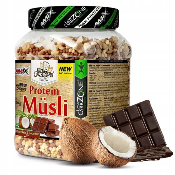 Мюсли — очень популярный и вкусный способ позавтракать или перекусить. Однако стандартные магазинные мюсли в среднем вписываются в рамки сбалансированной диеты для похудения и уж точно не помогают нам обеспечить полноценный белок. Однако если вы любите мюсли, не обязательно от них отказываться. Протеиновые мюсли от Amix Mr.Poppers – идеальный компромисс для каждого любителя мюсли. Белковый, низкоуглеводный вариант для похудения – для тех, кто заботится о своем здоровье, фигуре и самочувствии.