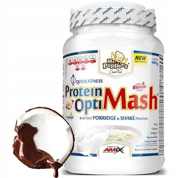 Г-н. Popper's Protein Opti Mash – это прекрасно растворимая готовая смесь для приготовления быстрого обеда. Вы можете пить нашу высокобелковую овсянку после тренировки, в течение дня – как здоровую замену обеда или десерта, а также всякий раз, когда вы чувствуете голод. Достаточное количество белка и низкокалорийная диета необходимы, если вы хотите сохранить стройную и красивую мускулистую фигуру. Амикс Протеин ОптиМаш – очень удобная и простая в приготовлении добавка. Упаковки весом 600 г хватит на 12 порций.