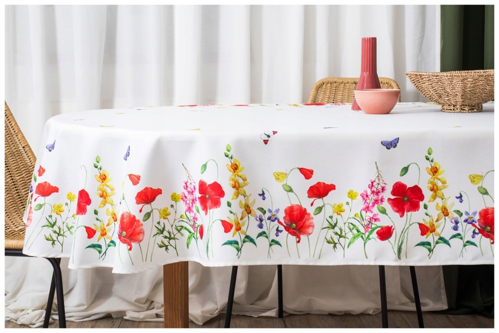 Пробудите скамью стол белые красочные цветы красные пасхальные маки 60x120