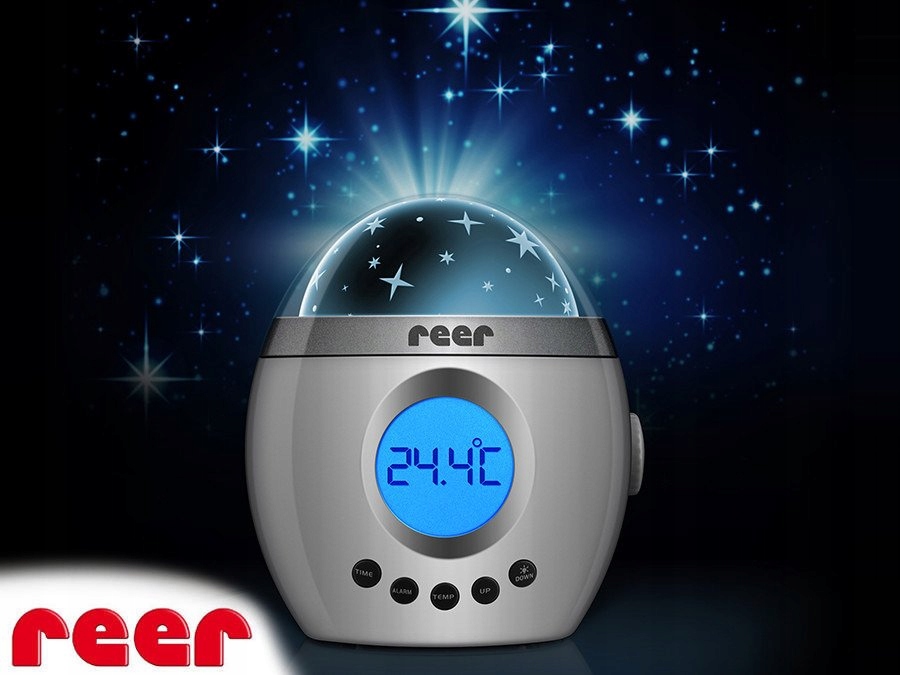 это больше, чем просто прикроватная лампа. Он бросает красочные созвездия вокруг стен, играет мелодии и звуки природы, также имеет радио с будильником и термометром. h1>