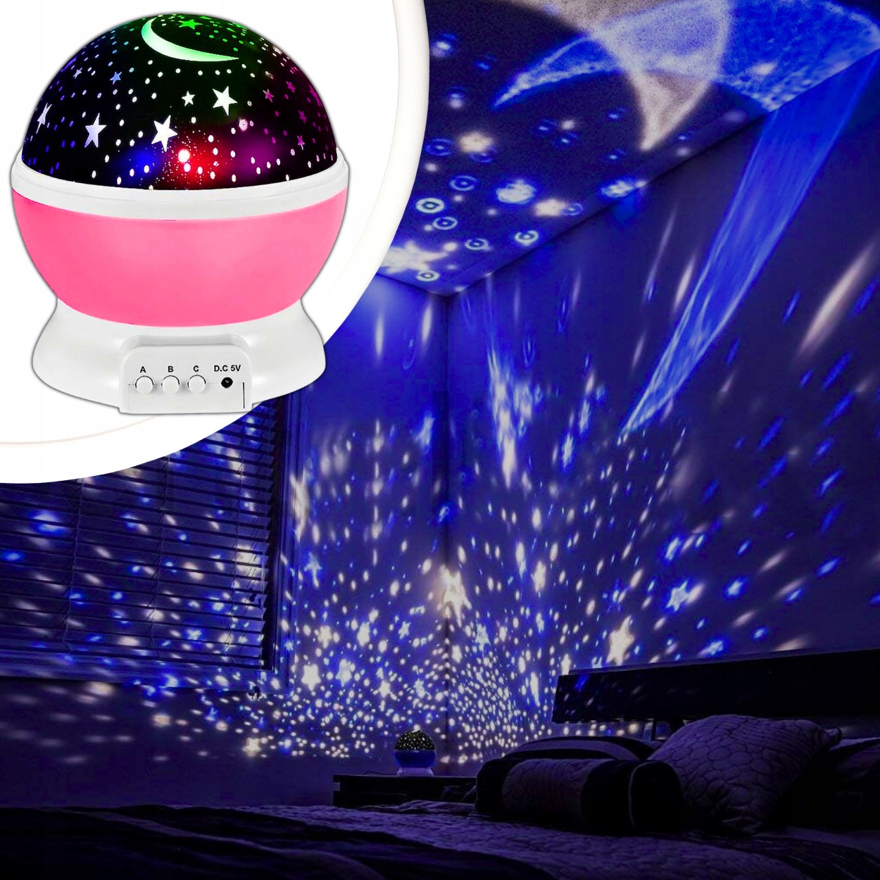 Лампа компактная и не занимает много места, и благодаря двум вариантам питания вы можете взять ее везде. Он может быть подключен к источнику питания с помощью кабеля USB (DC 5V) или Power 4 AAA Batteries (батареи не включены), что делает его идеальным для поездок, вечеринок или лагеря. dziecięcych. Просто поставьте на крышку, чтобы преобразовать его в уютную прикроватную лампу , идеально подходит для детей, которые нуждаются в освещении во время сна. Для детей ребенка - идеальный продукт для подарка, который принесет небольшую магию в каждую комнату. Проектор предлагает два режима: Постоянный или rowary . Возможность выбирать из 8 различных цветов света и 3 уровней интенсивности позволяет адаптировать освещение к потребностям каждого ребенка. Безопасно для глаз светодиоды обеспечивают хороший сон и уникальное настроение