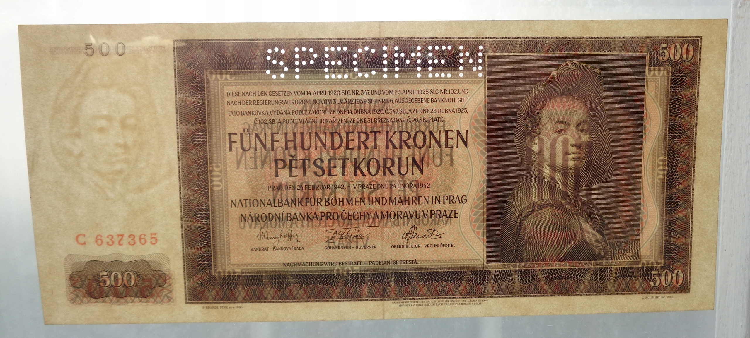 Протекторат Богемія і Моравія - ЗРАЗОК - 500 крон - 1942 - банкнота