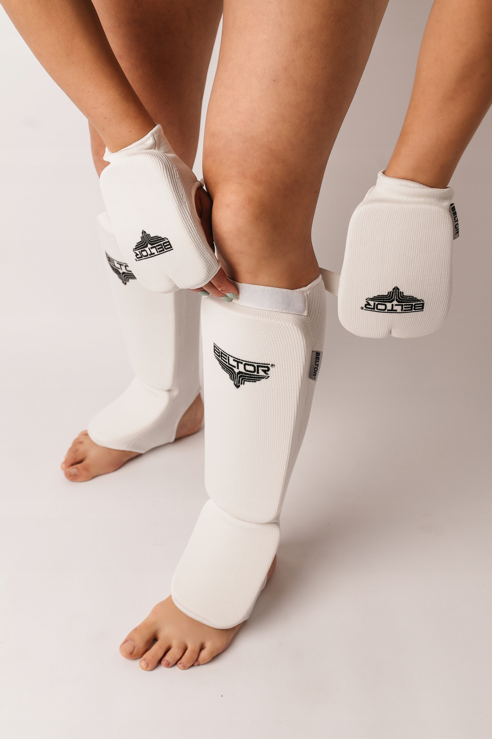 Эластичные щитки для голени и плюсны идеально подходят для тренировок по каратэ, тхэквондо, кикбоксингу и другим единоборствам.