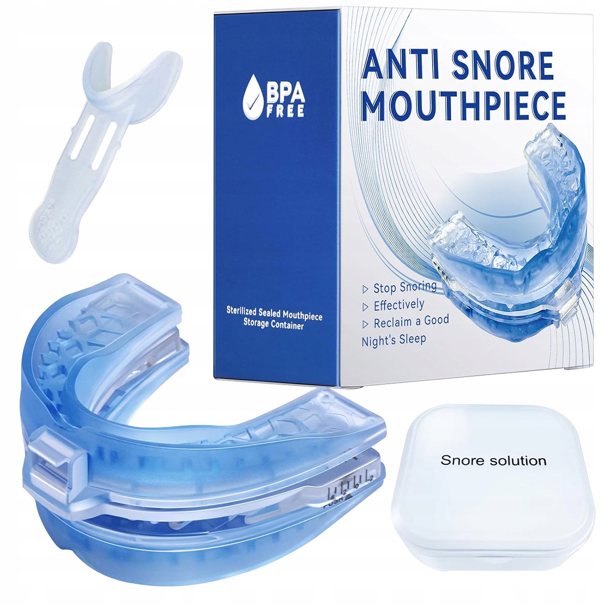 Этот мундштук против храпа адаптируется к любой форме рта и может быть индивидуально отрегулирован под контуры ваших зубов и челюсти, обеспечивая оптимальный комфорт. Спите ли вы на спине, на боку или на животе, наш мундштук против храпа будет удобно оставаться на месте. Он подходит для различных форм и размеров рта и идеально подходит для мужчин и женщин, которым нужен спокойный сон.