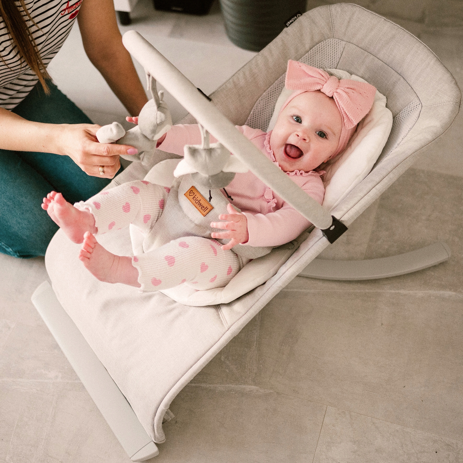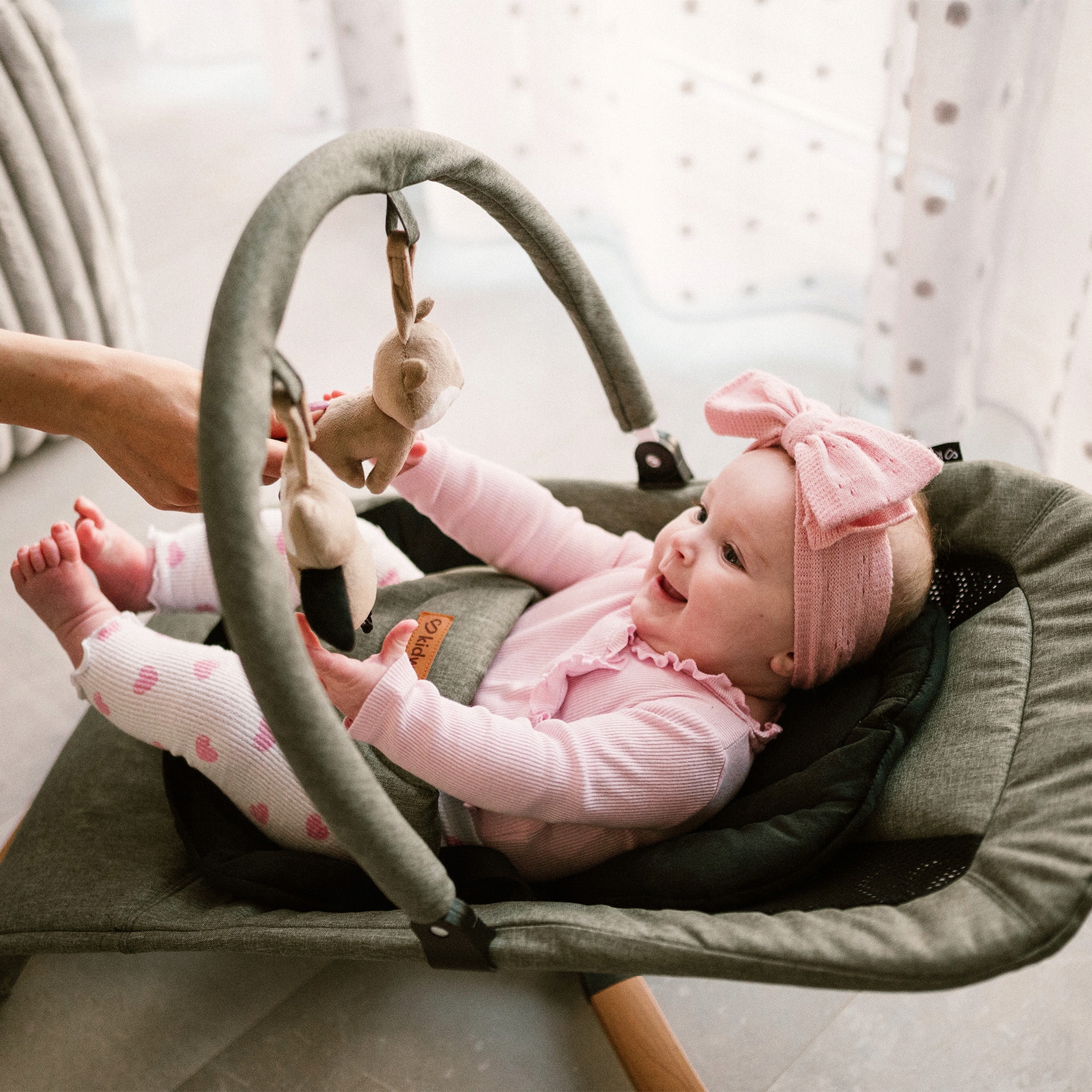 Kidwell Rubi оснащен регулируемой повязкой с двумя очаровательными мягкими игрушками. Вы можете установить его так, чтобы малыш свободно достигал игрушек, восхищался ими близко или что они не в виду - в зависимости от настроения и потребностей.
