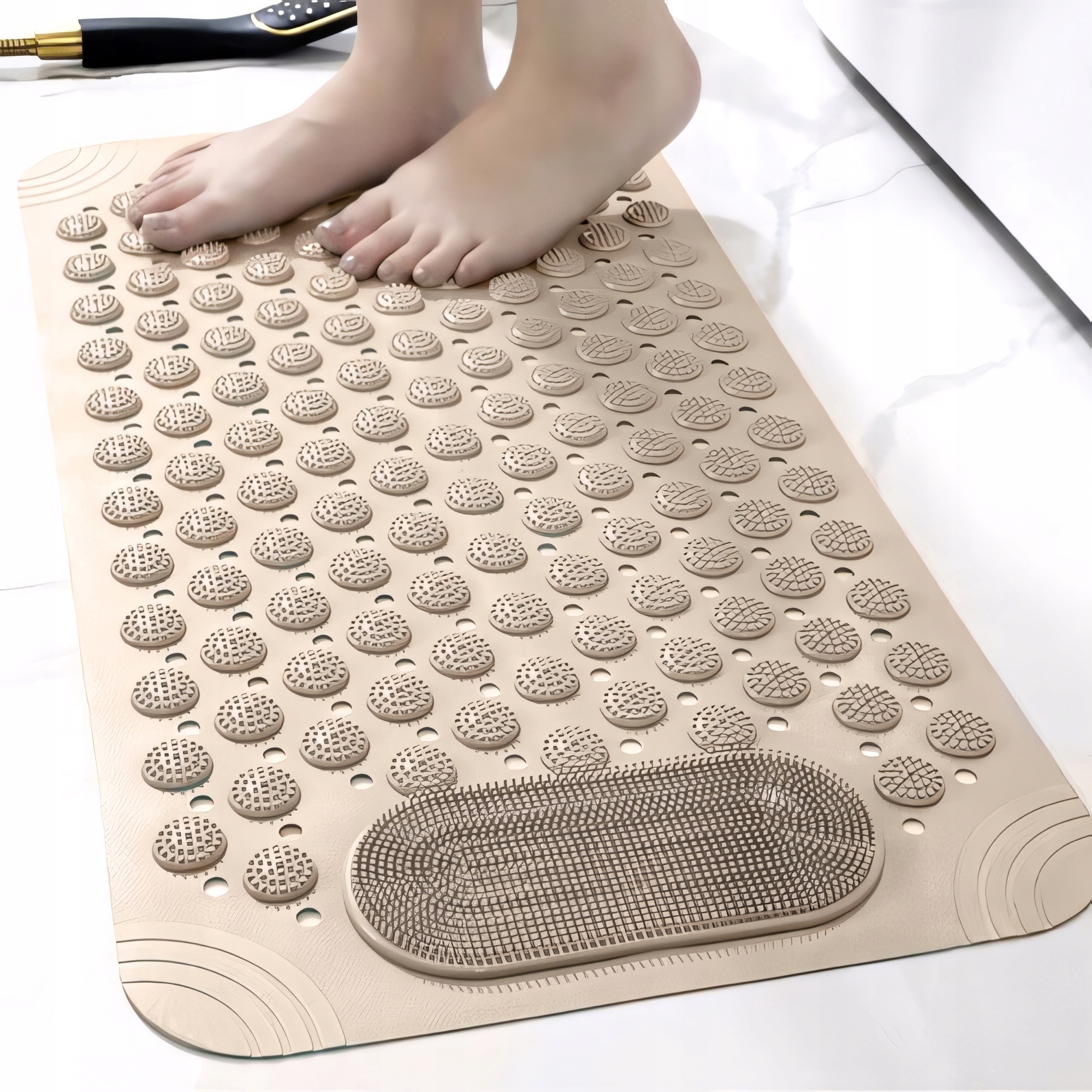 ✔️ Удобный уход за ногами – выступы позволяют тщательно мыть ноги без необходимости наклоняться, что удобно и практично во время повседневной деятельности.