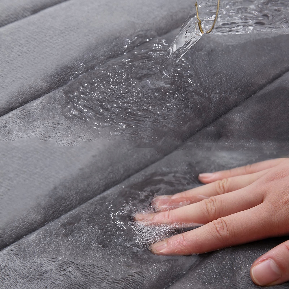 - Наши впитывающие коврики для ванной изготовлены из пены с эффектом памяти и толстого микроволокна, которое легко пружинит, не меняя форму.
