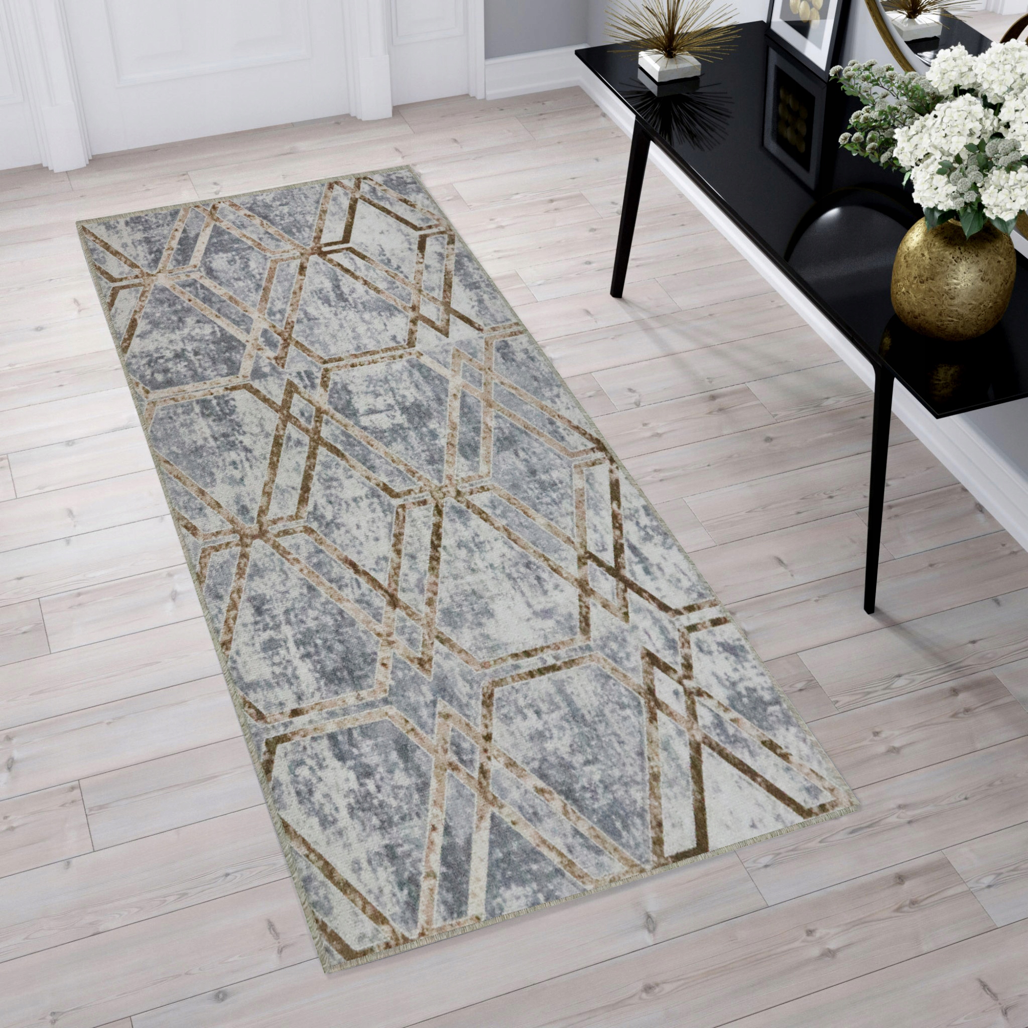 Современный противоскользящий ковер очарует вас оригинальным дизайном и неподвластными времени цветами, которые впишутся практически в любой интерьер.
