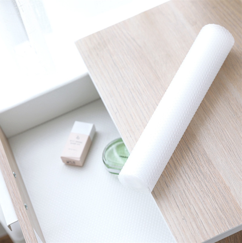 Противоскользящий коврик для ящиков предотвращает перемещение содержимого ящиков, царапание и повреждение материала, из которого они изготовлены. Также устраняет шум.