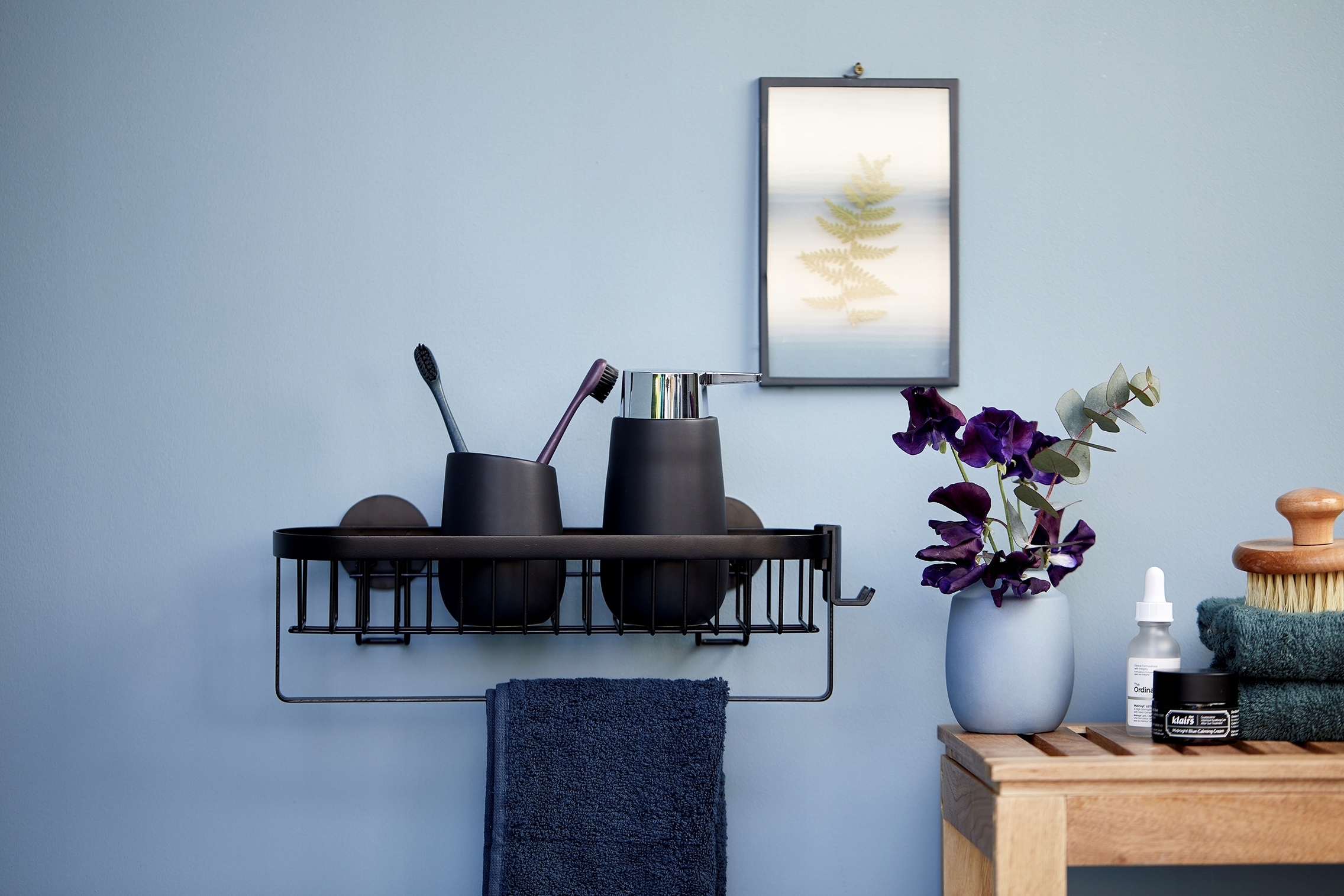 ✅ Добри выглядит на фоне темной плитки, недавно модного элемента ванных комнат.