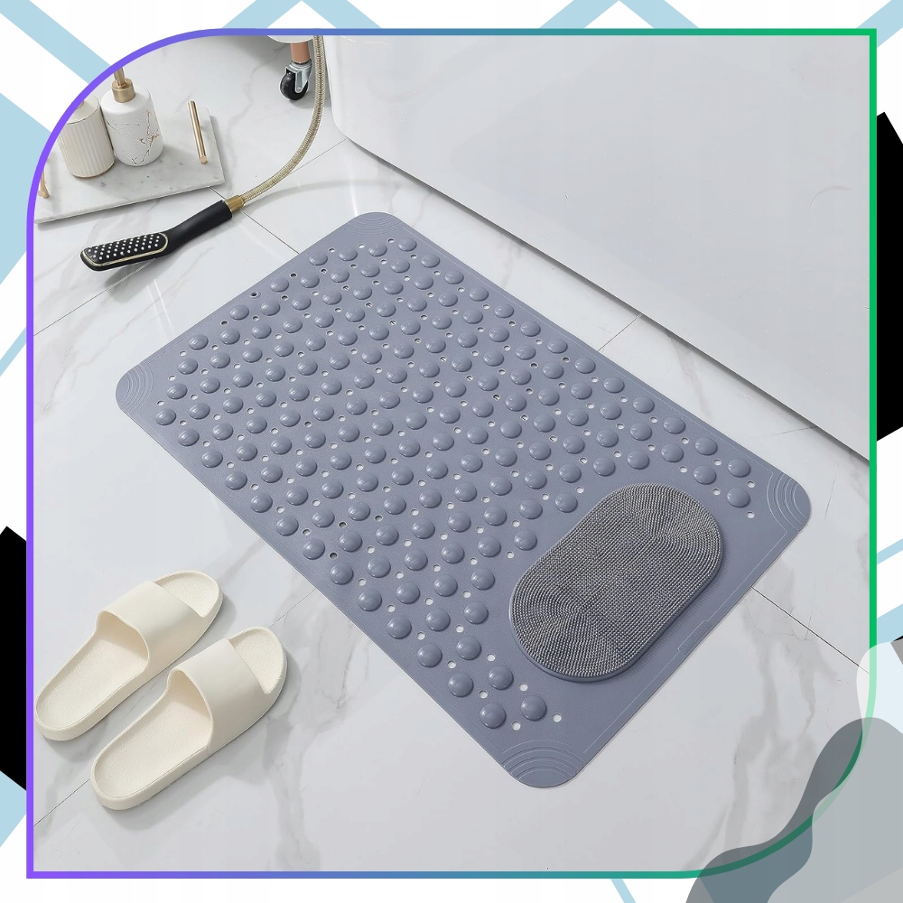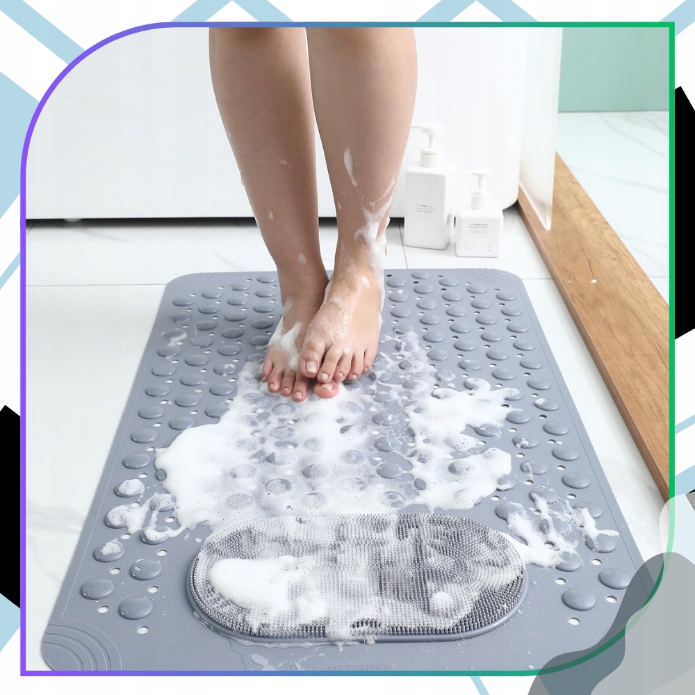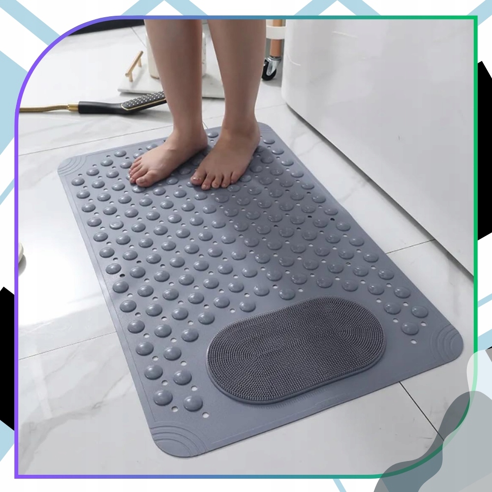 ✅Мощные присоски – целых 160 – эффективно стабилизируют коврик, обеспечивая надежное прилегание к влажной поверхности. Это значительно снижает риск опасного скольжения. Особая поверхность с шероховатой структурой делает коврик противоскользящим идеальным для людей, которые ценят безопасность и комфорт во время купания. Дополнительным преимуществом является встроенная массажная зона, которая мягко стимулирует кровообращение и обеспечивает приятный массаж ног, стоя в душе или ванне.