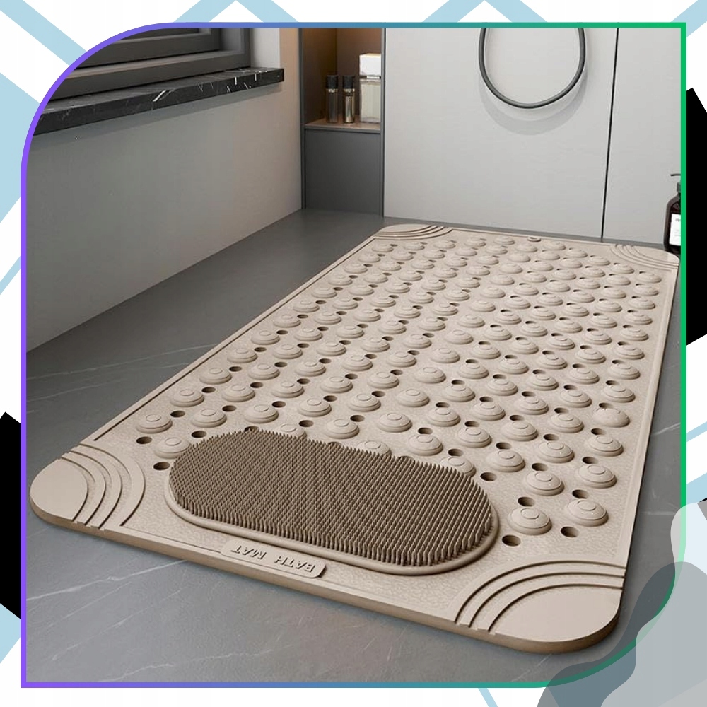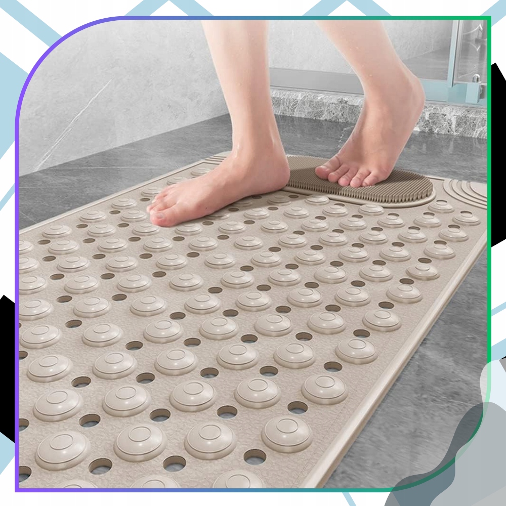 ✅Благодаря 160 сильным присоскам коврик прочно прилегает ко дну ванны, предохраняя его от скольжения. Благодаря специальной структуре поверхности противоскользящий коврик значительно повышает безопасность во время купания, обеспечивая стабильную поддержку даже на скользком полу. Дополнительным удобством является встроенная массажная зона – изящные выступы приятно массируют стопы, стимулируя кровообращение и повышая комфорт при использовании душа или ванны.