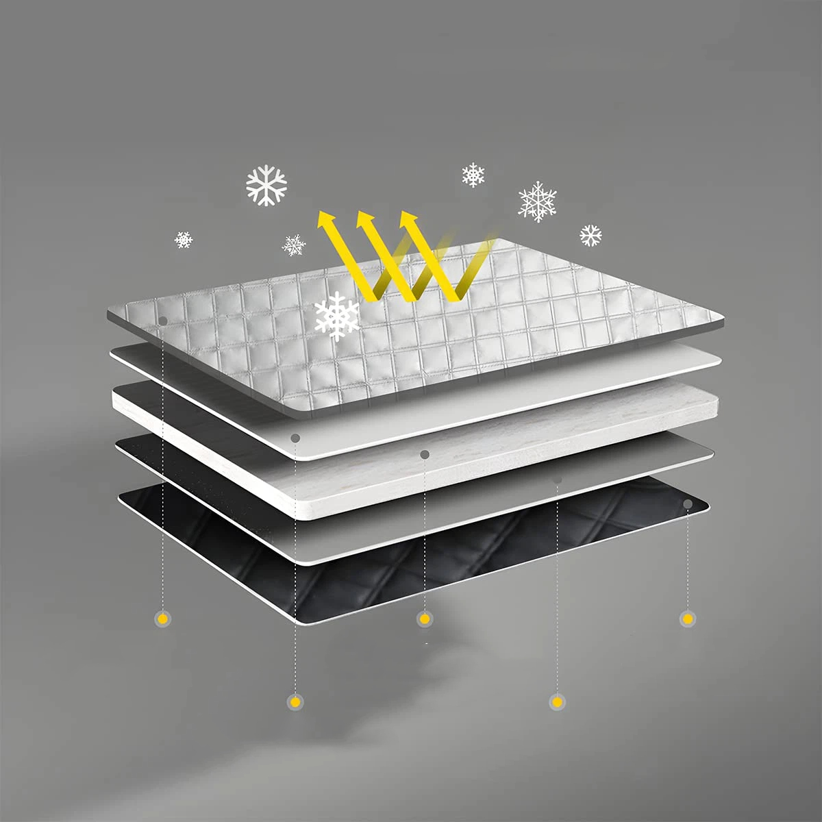 Качество: Изготовлен из четырехслойного материала (алюминиевая фольга + полипропиленовая вата + неформующаяся ткань), который является водонепроницаемым, огнестойким, устойчивым к хищникам, морозостойким и устойчивым к ультрафиолетовому излучению. Чехол не повреждает стекло и защищает дворники, продлевая срок их службы.