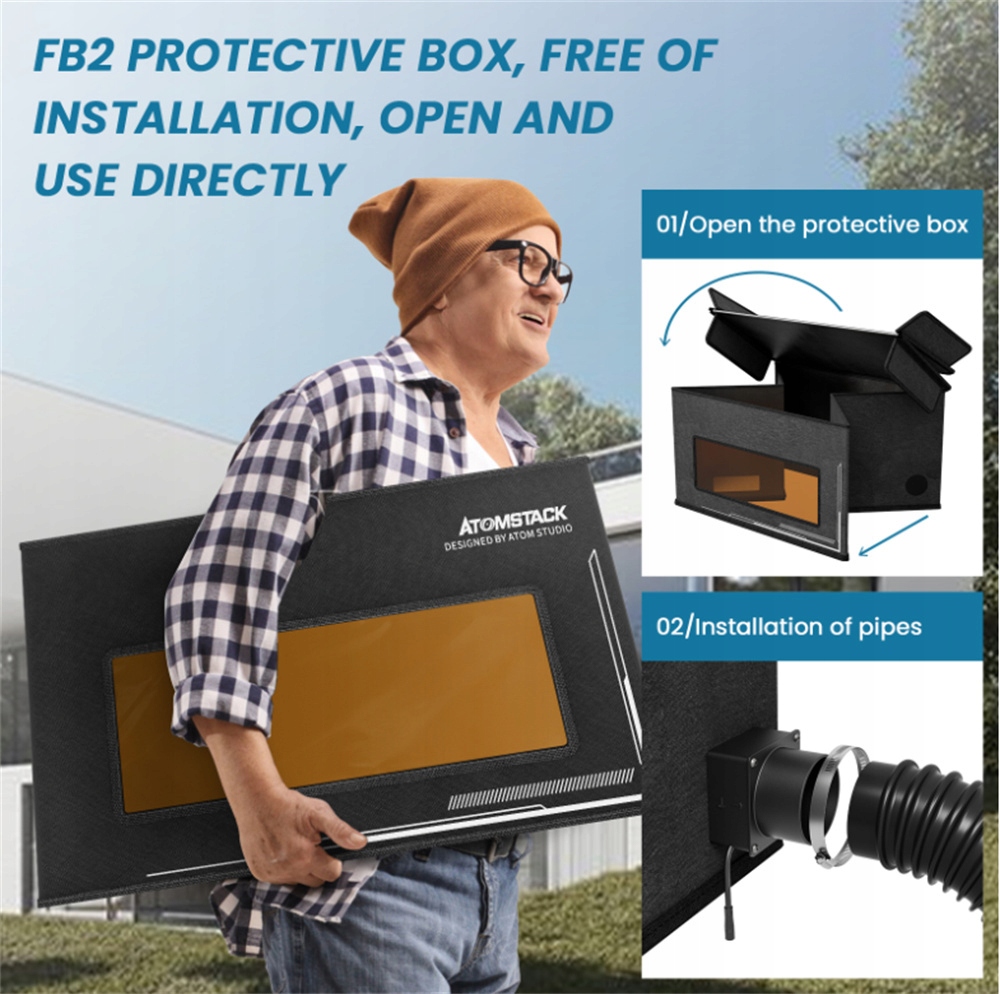 Защитная коробка. AtomstackmakerFB2 основан на принципе легкости и удобства хранения. В ряду с твердым слоем, который можно использовать в течение длительного времени, не разрушаясь. В строительной документации установка не требуется. Его можно собрать в течение трех минут после получения товара, а также быстро разобрать и хранить для беспроблемного хранения!