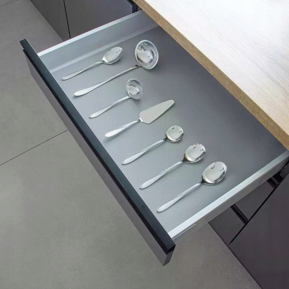 Противоскользящий коврик для ящиков предотвращает перемещение содержимого ящиков, царапание и повреждение материала из чего они сделаны. Его также можно использовать как подставку для стола или письменного стола. Идеально подходит для облицовки полок горшечными цветами. Защитит мебель от влаги.
