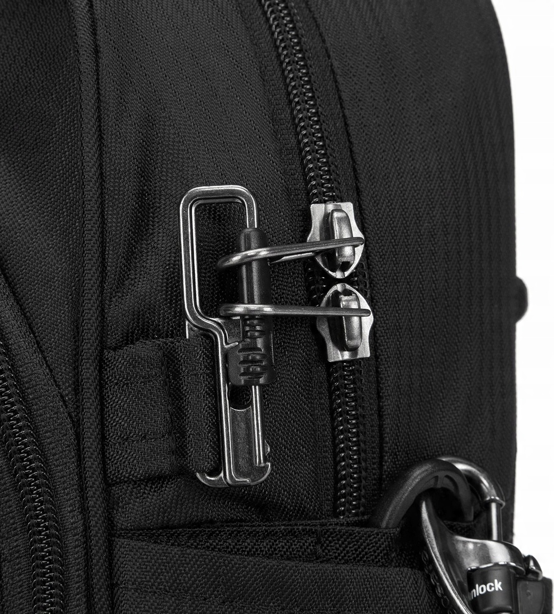 - Дополнительные характеристики: Противоугонная конструкция, Карман для планшет, Возможность регулировки длины ремешка, Устойчивые к порезам панели (Exomesh), Карман с RFID-защитой, Практичный боковой карман, Устойчивые к порезам ремни (Carrysafe), Возможность застегивания молний на висячий замок TSA