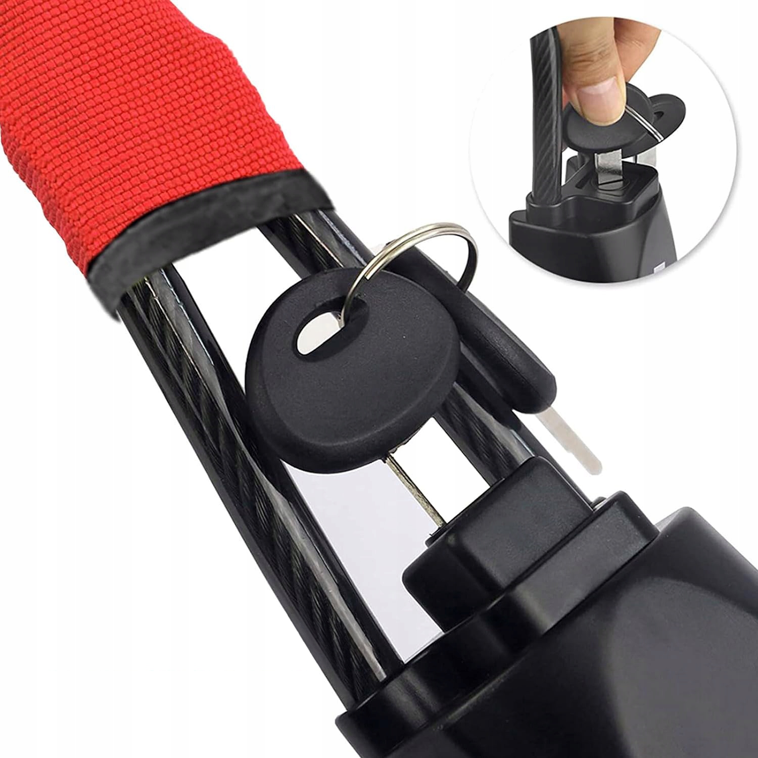 - Передняя часть крепится к рулевому колесу с помощью очень прочной стали веревка. Задняя часть пристегивается ремнем безопасности.