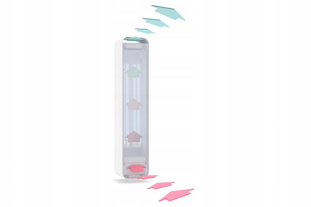 - Благодаря принудительной циркуляции воздух проходит через внутреннюю часть лампы, где подвергается воздействию ультрафиолета UV-C, дезинфицируется, а затем вытесняется наружу.