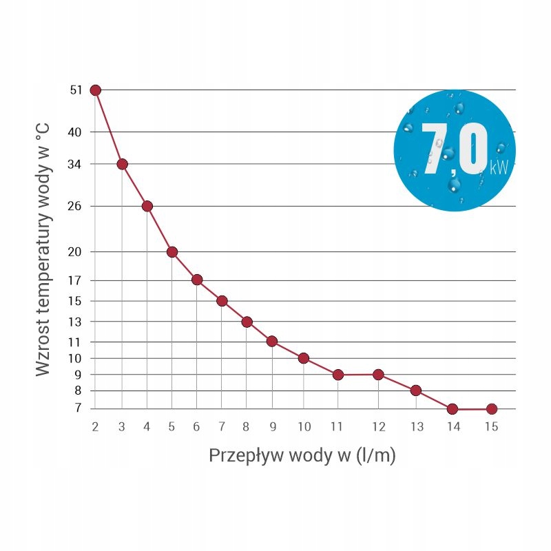 - Мощность нагрева 7,0 кВт - позволяет быстро нагреть воду,
