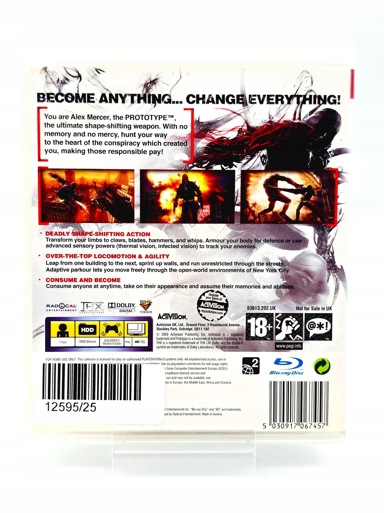 Prototype - это игра, происходящая в открытом мире, напоминающую серию Grand Theft Auto. Мы играем роль героя с сверхъестественными способностями, чья задача - открыть его собственную личность и спасти остров Манхэттен от ужасного вируса. Производство было разработано Radical Entertainment.