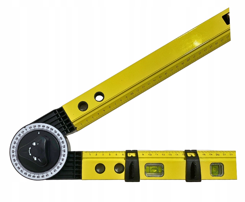 Наш уровень — это брендовая продукция из качественных материалов. Встроенные измерительные инструменты включают транспортир с диапазоном от 0° до 270°, уровень длиной 500 мм с двумя пузырьками и линейную линейку длиной 50 см. Общая длина в разложенном виде — 115,5 см.