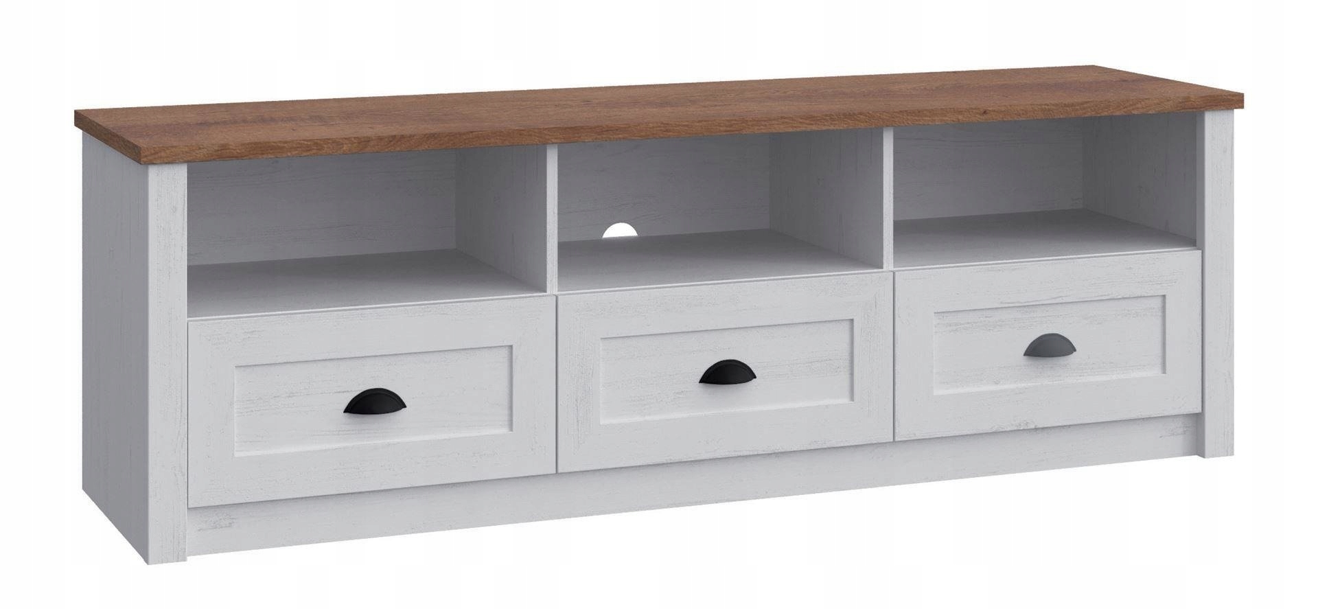 Элегантная тумба под телевизор с тремя ящиками в прованском стиле.