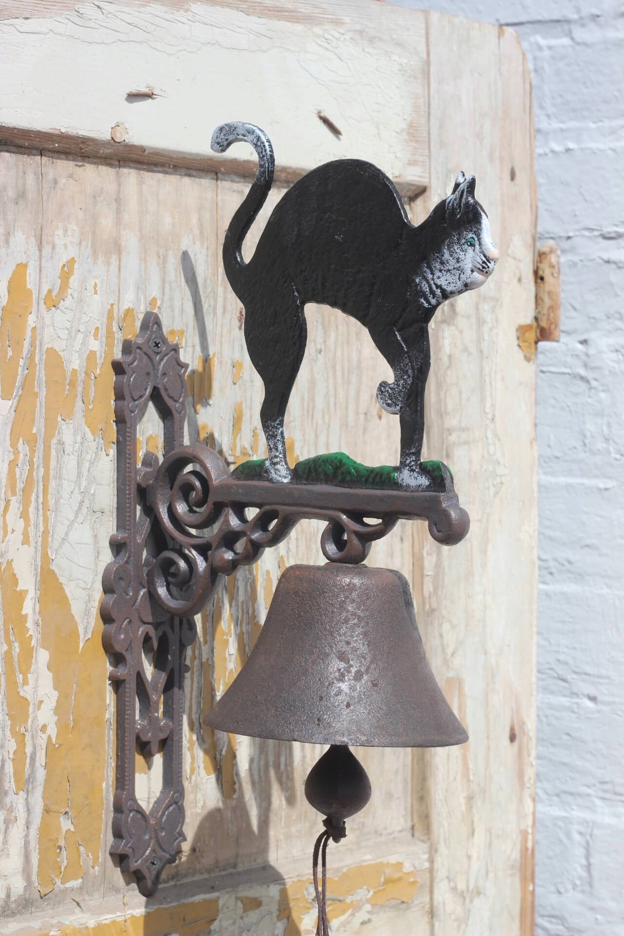 Провансальский настенный колокольчик с колокольчиком в виде черной кошки