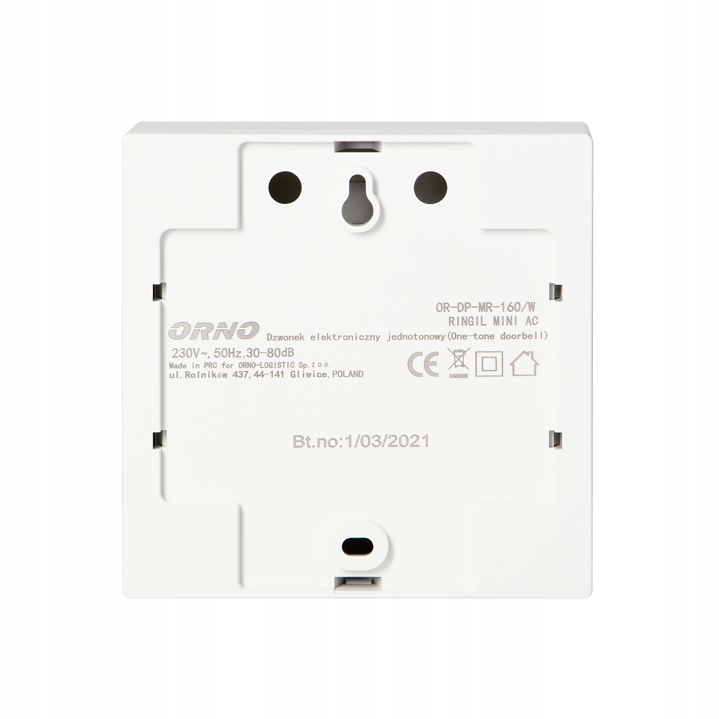 RINGIL MINI однотональный проводной дверной звонок 230В. Простой в установке и удобный в использовании электронный звонок с регулировкой громкости.